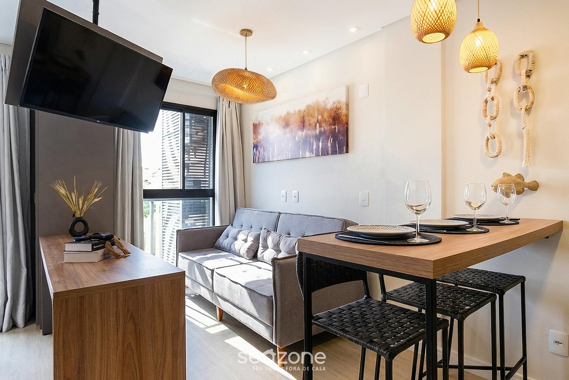 ¡Confort y modernidad cerca del mar y la laguna! Studio bien distribuido con cama queen y aire acondicionado, sala acogedora con sofá cama y Smart TV, cocina equipada y espacio para comidas. El balcón aporta ligereza al ambiente. El edificio cuenta con piscina infinita y área gourmet en la azotea. Fácil acceso a Praia do Rosa, Lagoa de Ibiraquera y Surfland. ¡Reserva ahora y disfruta!