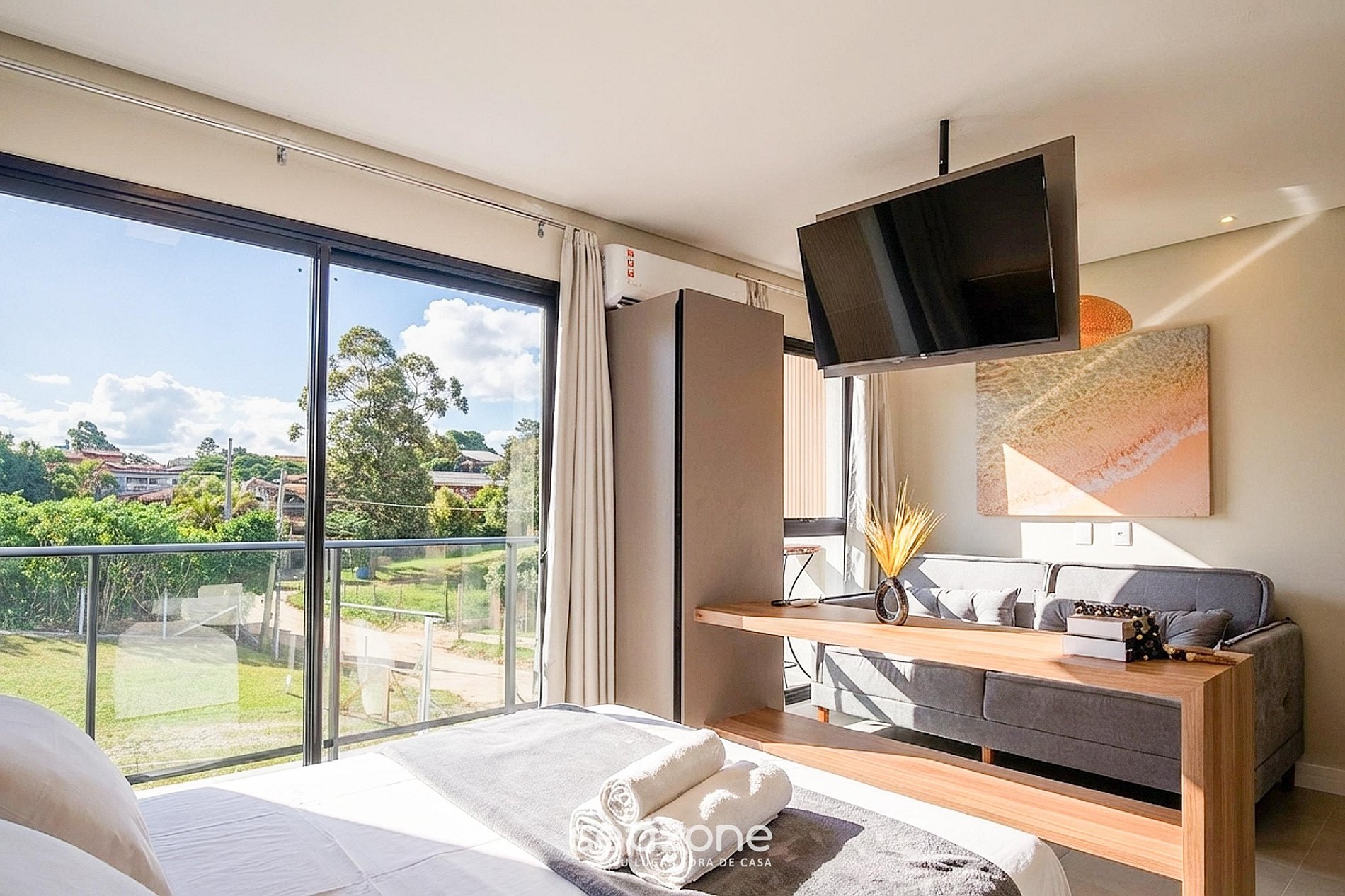 Encanto y practicidad en Praia do Rosa! Este acogedor studio ofrece el equilibrio ideal entre confort y ubicación. A pocos minutos a pie de las principales discotecas y cerca de la playa, se encuentra en el edificio Rosa Spot, que cuenta con piscina y área gourmet en el rooftop, perfecto para relajarse y disfrutar. El espacio dispone de cama queen, sofá cama, Smart TV y cocina equipada. ¡Reserva y disfruta lo mejor de la región!