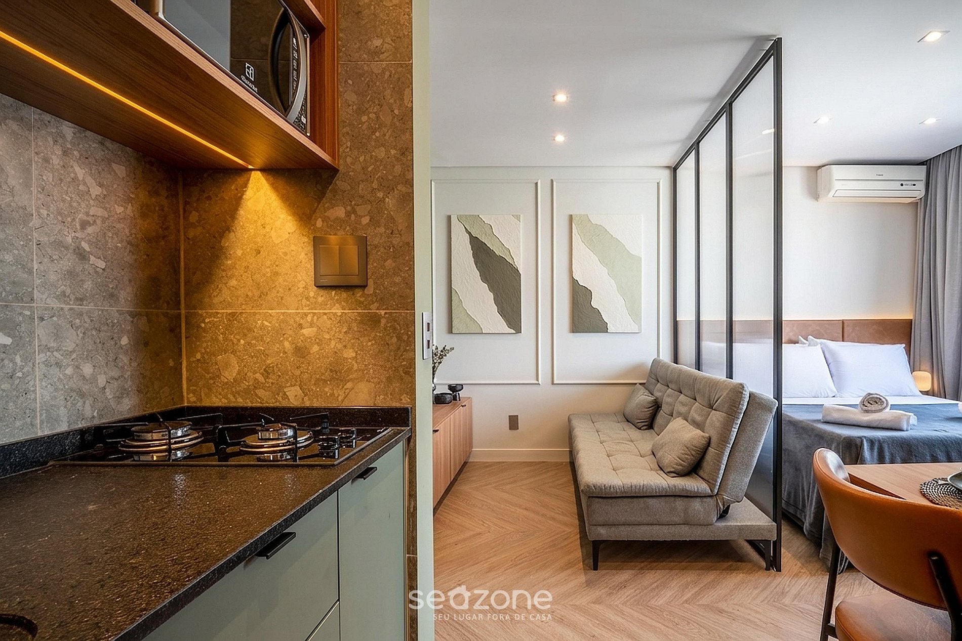¡Alójese en el corazón de Florianópolis! Este moderno estudio en el Centro ofrece fácil acceso a lugares icónicos como el Mercado Público (900m) y el encantador Puente Hercílio Luz (1,5km). A pocos pasos de la Avenida Beira-Mar Norte (1km), es ideal para quienes buscan practicidad. Cerca del TICEN (800m) y de la Terminal de Autobuses (1km), facilitando el traslado a las famosas playas. Perfecto para viajes de trabajo o placer en la Isla de la Magia.
