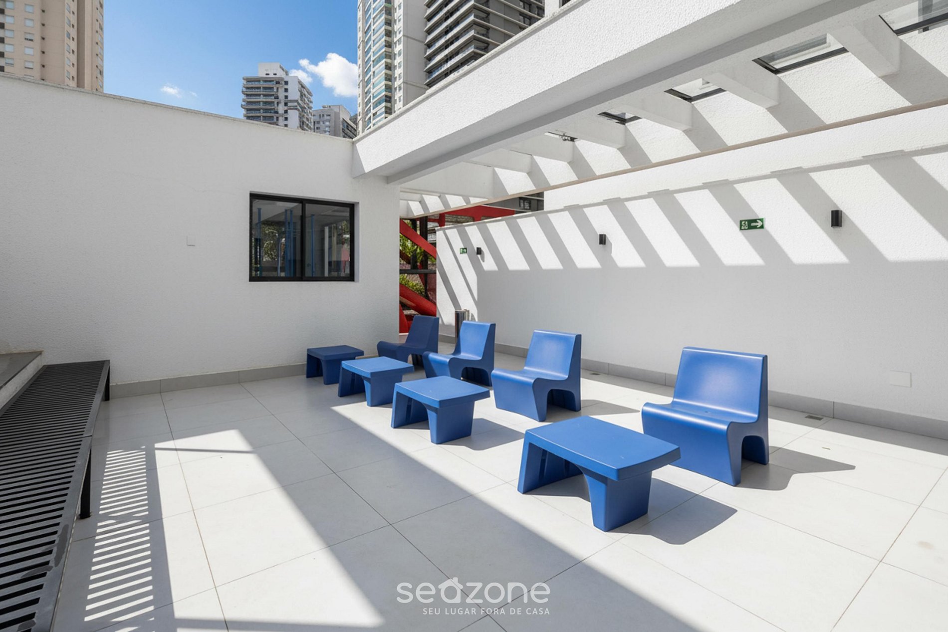 Ideal para parejas o viajeros solos, el espacio ofrece comodidad y practicidad con vista a la ciudad. El condominio tiene piscina climatizada, gimnasio, sauna y coworking. La ubicación es excelente, cerca del Parque Vaca Brava, Goiânia Shopping, Órion Complex y bares y restaurantes.