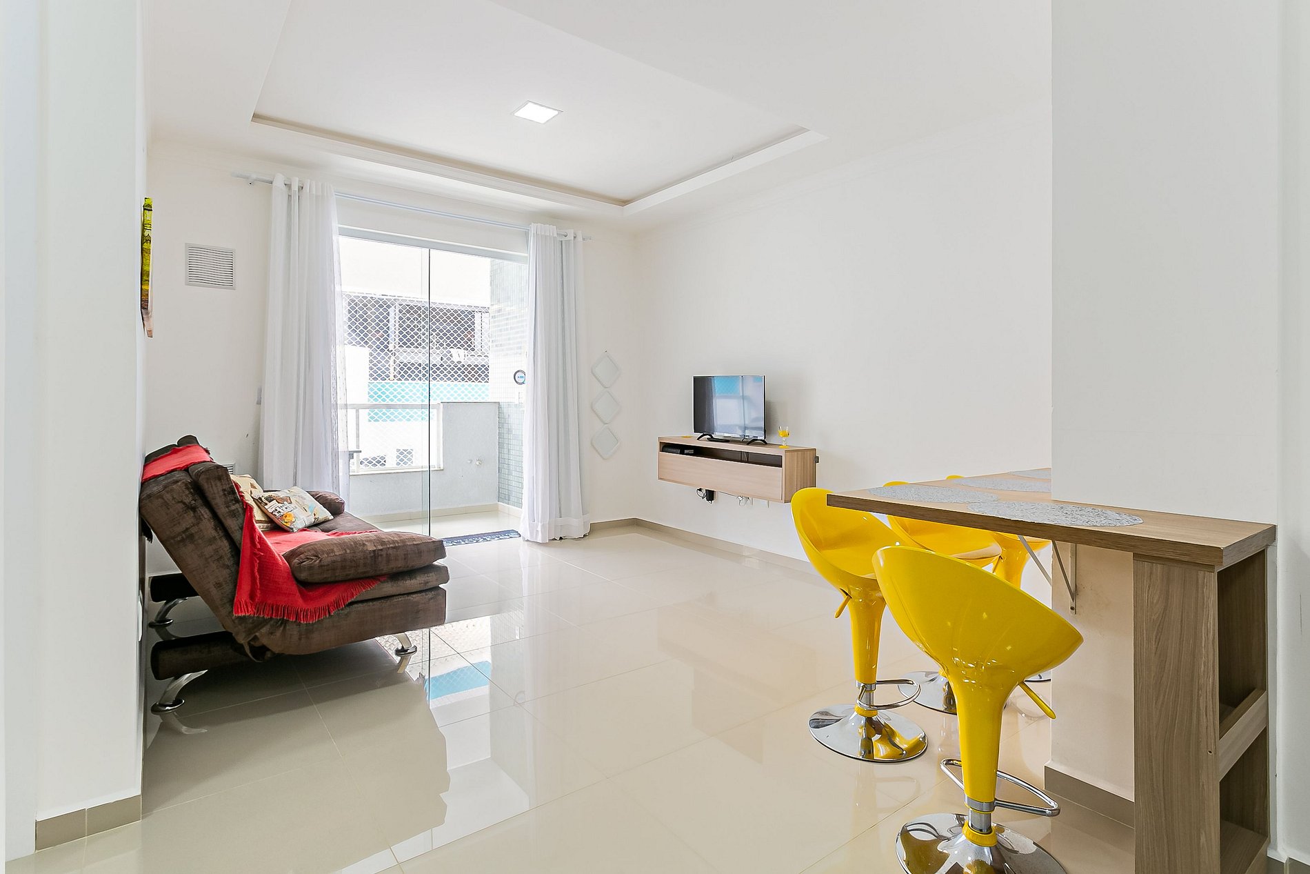 - Sala de estar com sofá cama de casal e TV tela plana;