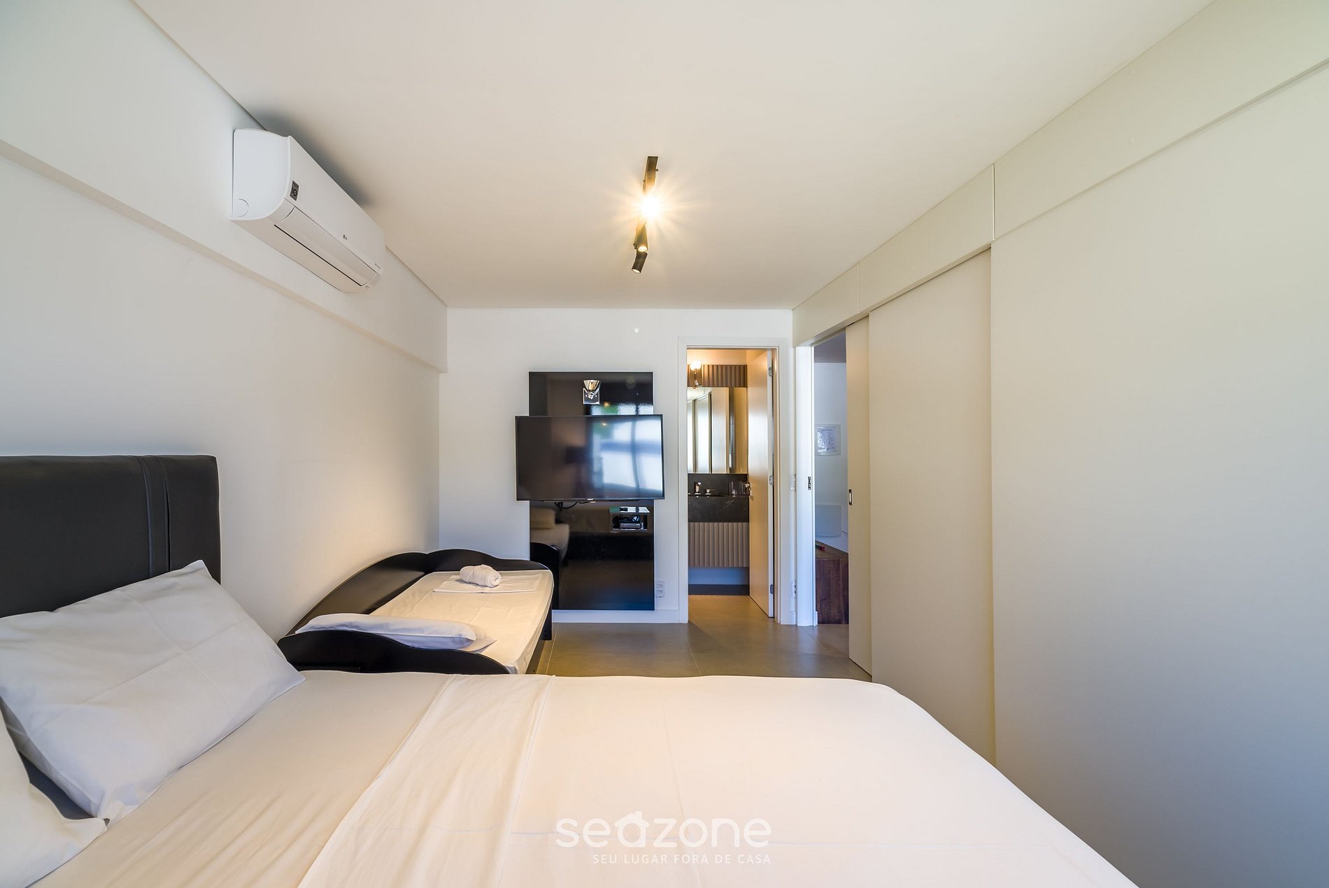 - 1 Suite con 1 cama matrimonial, 1 cama individual, 1 cama auxiliar individual, armario, smart TV y aire acondicionado;- Sala de estar;