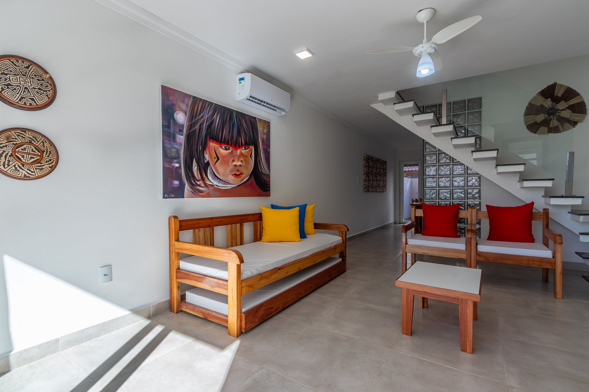 Además, estarás a pocos minutos a pie de excelentes restaurantes, tiendas encantadoras y la animada vida nocturna de Arraial.