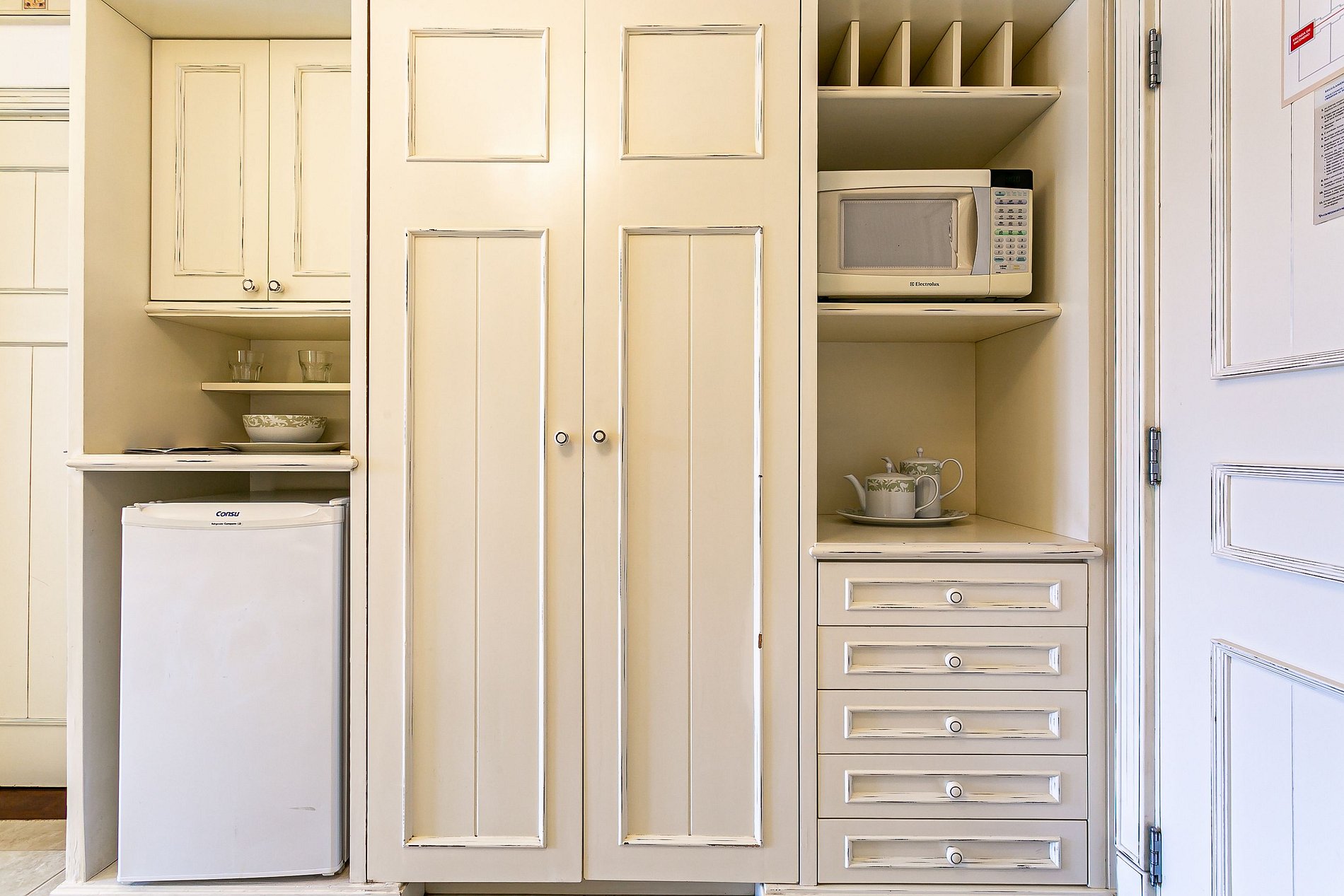 - Mini cocina con microondas, nevera y menaje de hogar;