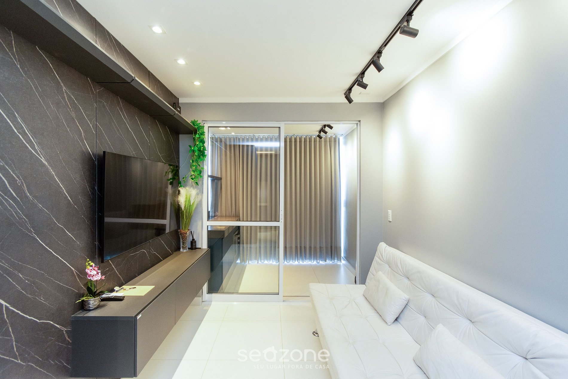 Disfruta de una estancia impecable en este encantador espacio de 1 dormitorio, ubicado en el deseado Setor Bueno. A pocos metros del Parque Vaca Brava, ideal para caminatas, y del Shopping Goiânia, lleno de tiendas, restaurantes y entretenimiento. El ambiente ha sido diseñado para tu comodidad, con cocina completa, Smart TV, Wi-Fi de alta velocidad, check-in sin llave y aire acondicionado, garantizando practicidad y confort.