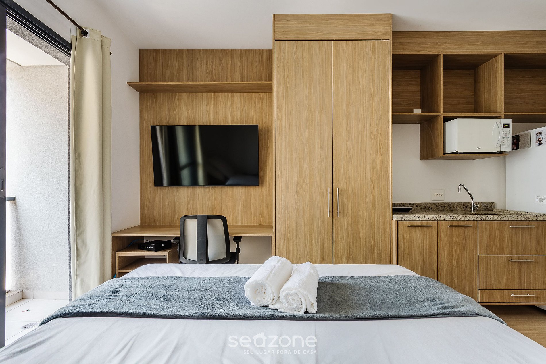 Hospédese en este estudio completo en Jardim das Acácias, São Paulo, y disfrute de excelentes comodidades. El condominio ofrece gimnasio, ascensor, lavandería de pago y una refrescante piscina, todo para garantizar una estadía cómoda. Además, cuenta con este estudio completamente equipado con baño privado, a solo 3 minutos de la estación de metro Brooklyn y cerca del Morumbi Shopping, lo que facilita sus compras y ocio.