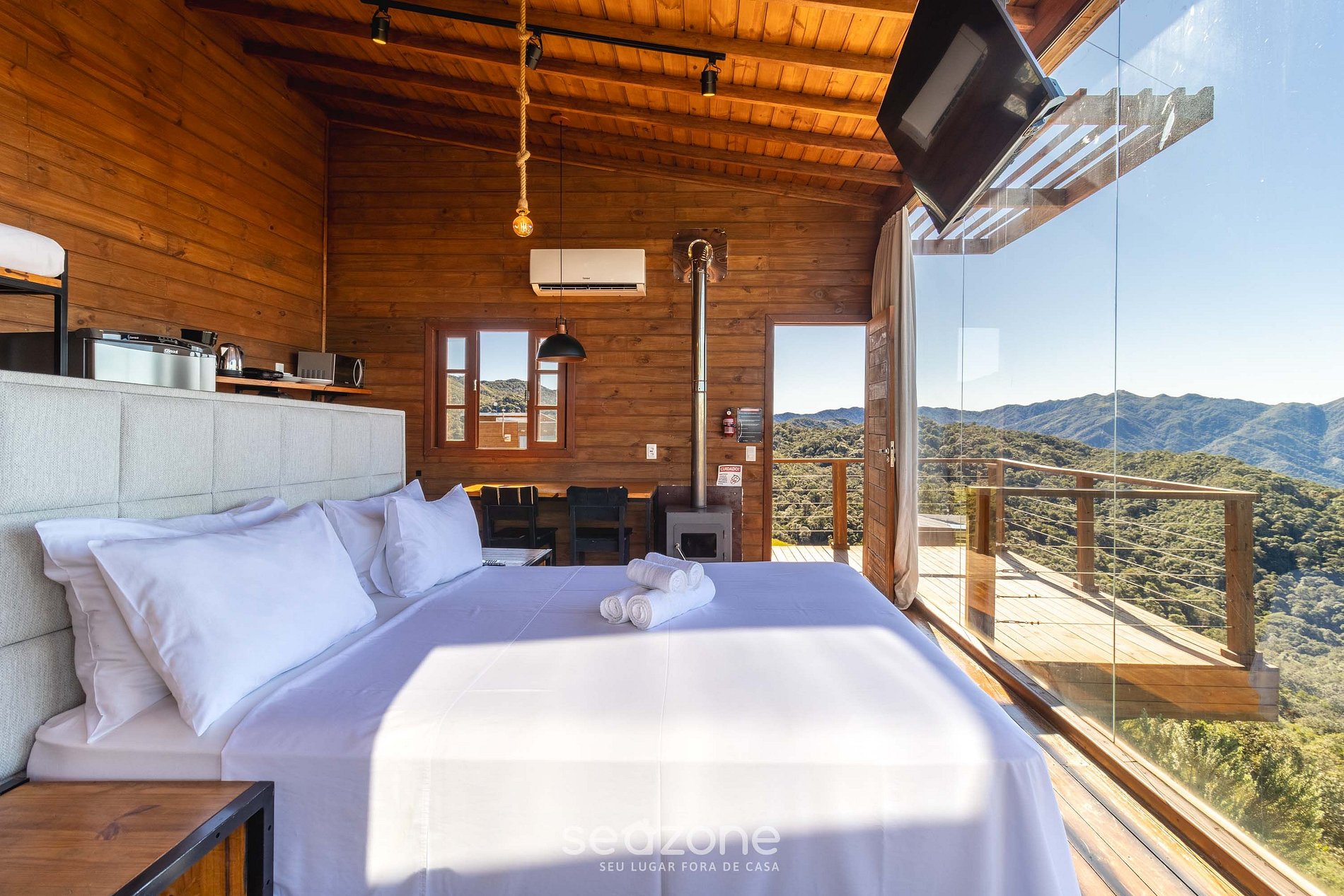 Combinando lo rústico con lo sofisticado, esta cabaña es el ambiente ideal para un alojamiento de lujo en medio de la naturaleza.. Además de ser acogedor, ofrece una impresionante vista a las montañas, perfecto para disfrutar de días románticos en pareja.