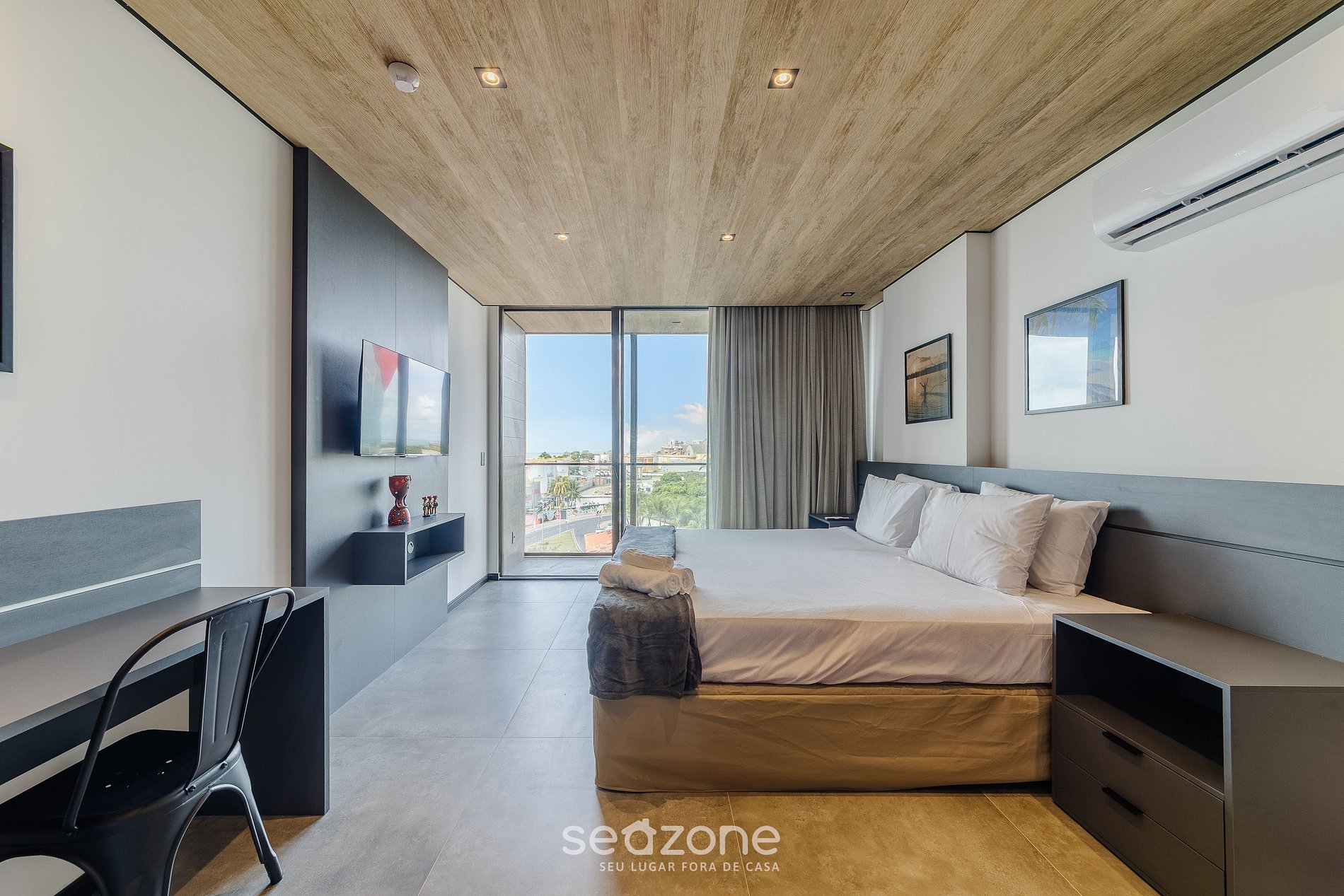 - 1 cama matrimonial king size, cortinas blackout, closet, Smart TV de pantalla plana y aire acondicionado;