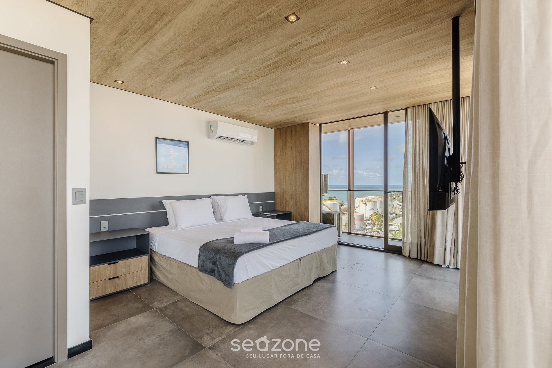 Encantador y moderno, el espacio ofrece cama king, aire acondicionado, cocina equipada, wifi y balcón con vista lateral al mar. Disfruta de una estructura de ocio tipo resort con piscina, sauna y sala de juegos. Todo eso muy cerca del malecón más bonito del Nordeste, la feria de artesanía y los sabores locales.
