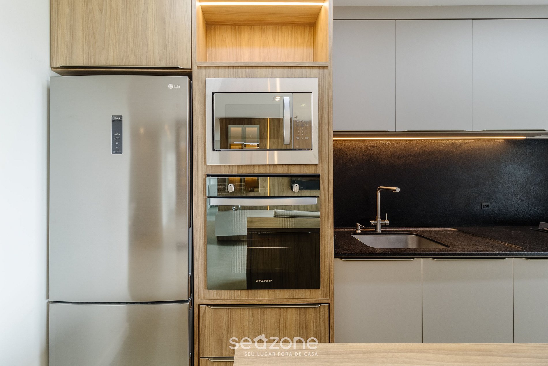 - Cocina completa con nevera, estufa cooktop, horno, microondas, sandwichera, kit de café, cafetera, hervidor eléctrico, licuadora, copas de vino, sartenes, vajilla y utensilios;