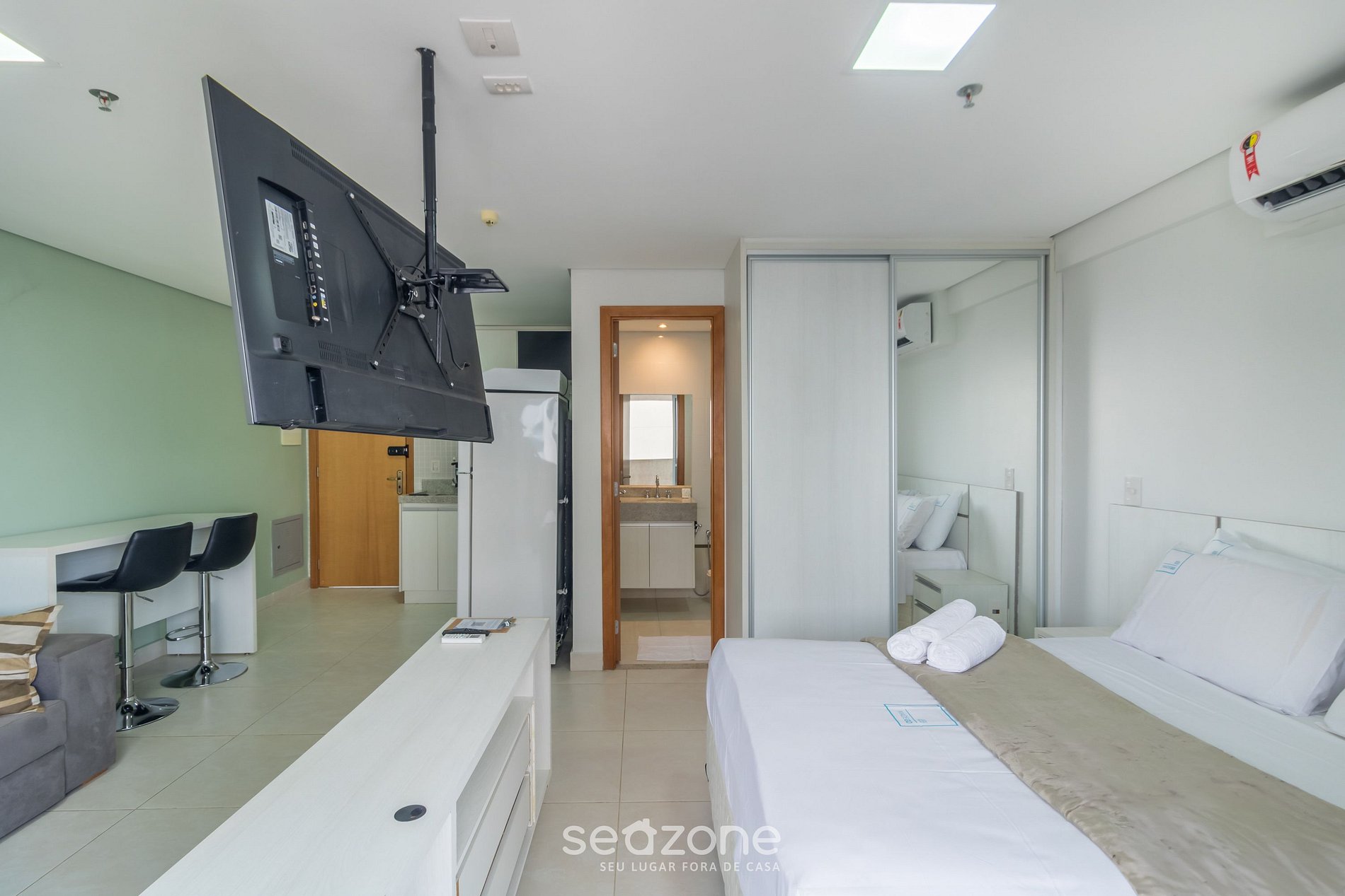 - Ropa de cama y baño de calidad hotelera (ropa de cama y toallas extras tienen un costo adicional por parte de Seazone).