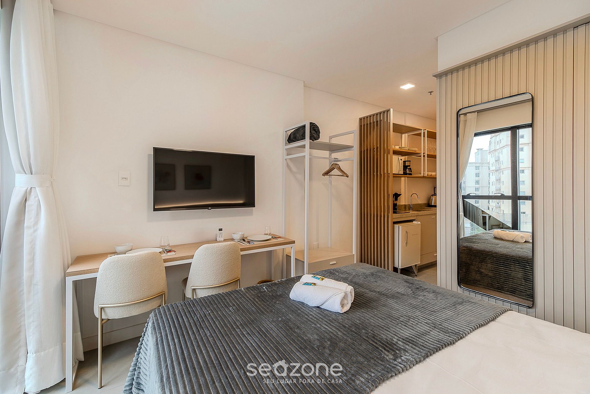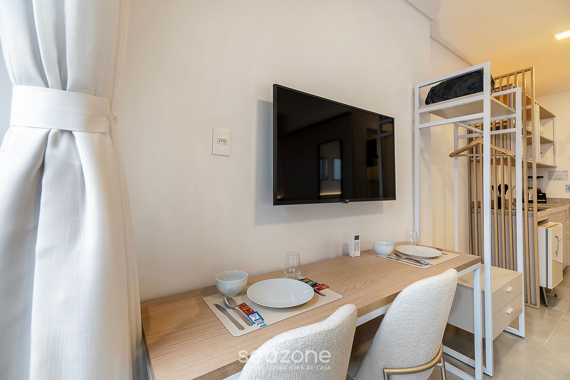 ¡Aproveche la comodidad de nuestro moderno estudio en Itapema/SC! Con aire acondicionado, TV y Wi-Fi, el espacio se encuentra en el Edificio Manhattan Flats, que ofrece una increíble piscina en la azotea, gimnasio con vista panorámica, sala de juegos, boliche y sauna. Para momentos de ocio extra, reserve las parrillas, ambas disponibles con tarifa. A solo 280 metros de la Playa Central y cerca de restaurantes.