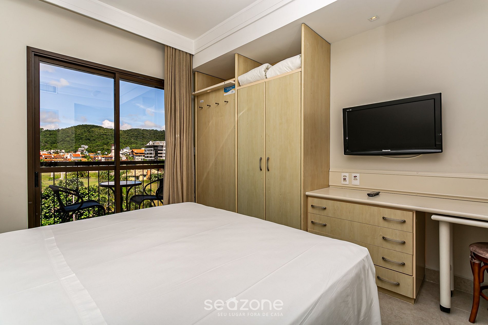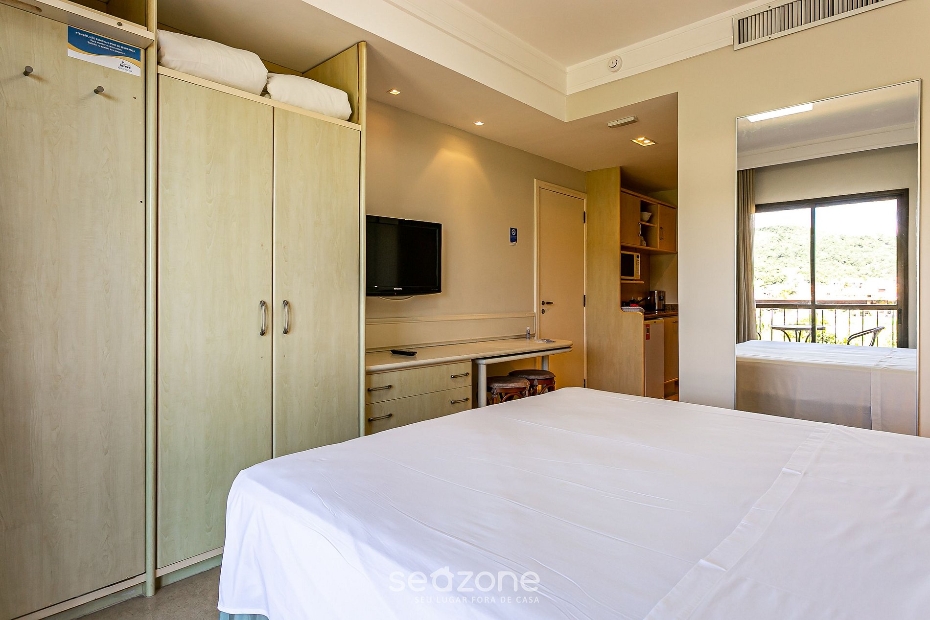 Apartamentos para 3 personas dentro del hotel Jurerê Beach Village. Hospédese en el mejor hotel de Jurere y tenga todas las comodidades, como servicio de limpieza diario, servicio de playa, acceso a la piscina, toallas de baño y ropa de cama.