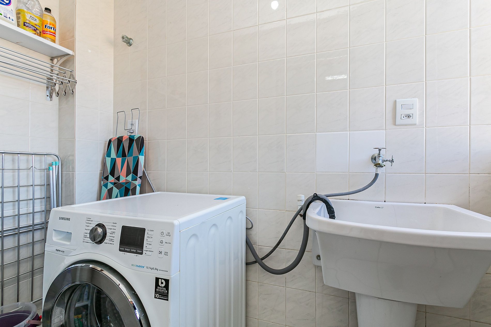 - área de servicio con lavadora, secadora, tendedero portátil, fijo y tanque;