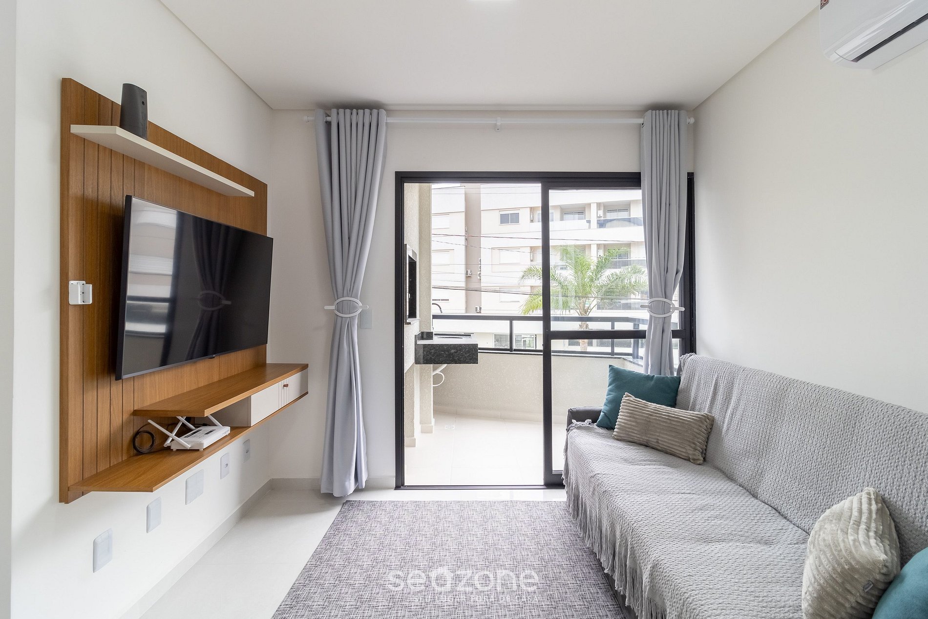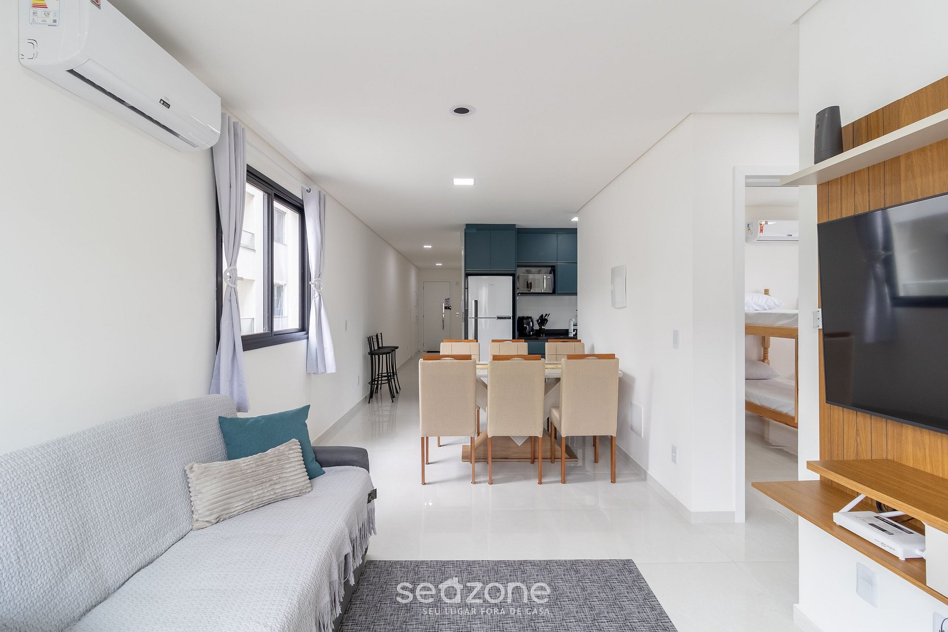 - Sala de estar amplia, equipada con sofá cama, Smart TV, mesa para 6 personas y aire acondicionado, ideal para descansar y compartir momentos;