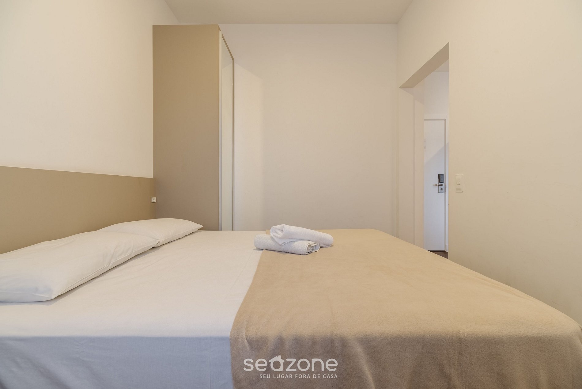 - Estudio con sofá cama doble (para 1 adulto y 1 niño hasta 12 años), cama queen size, closet, TV y cocina integrada;
