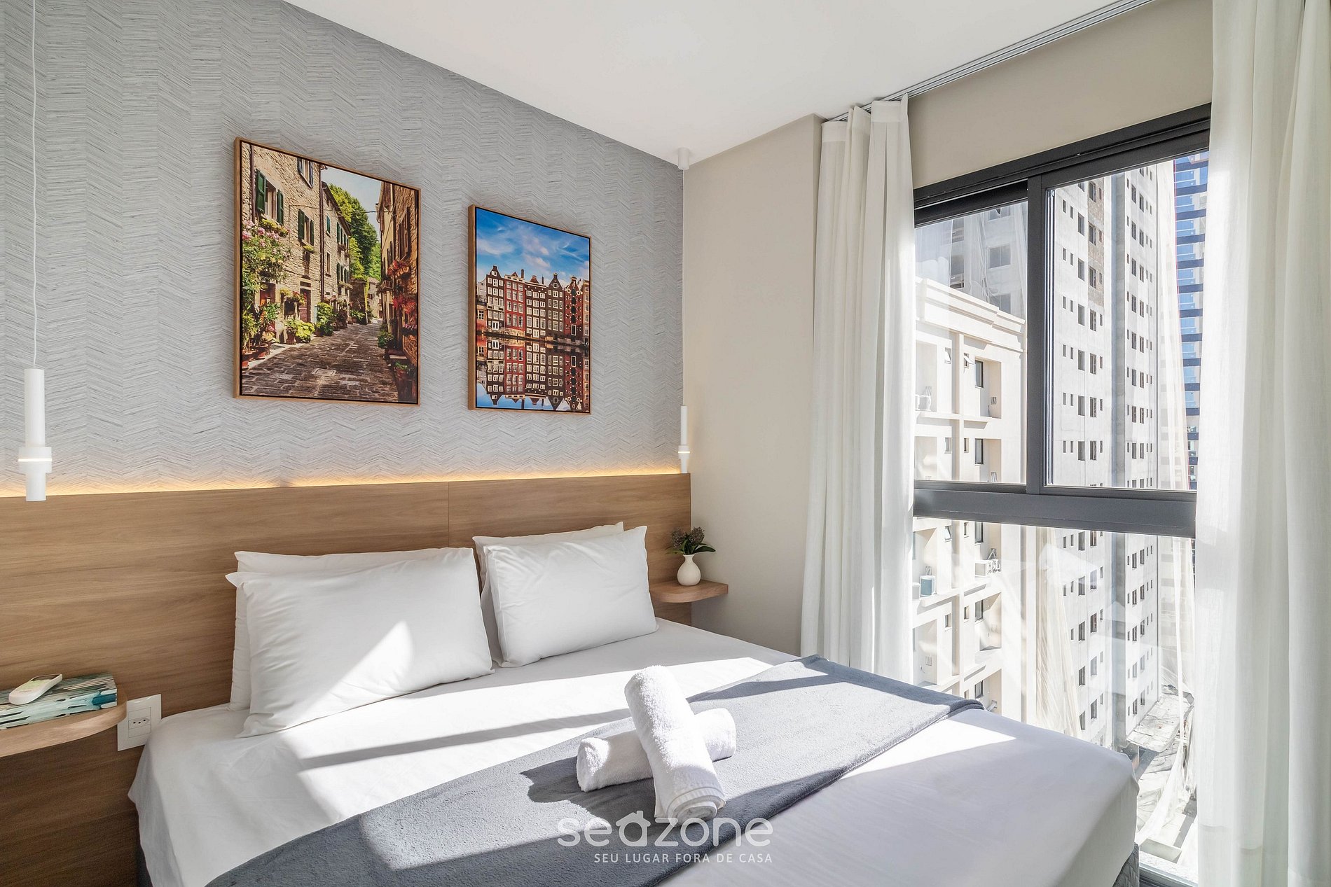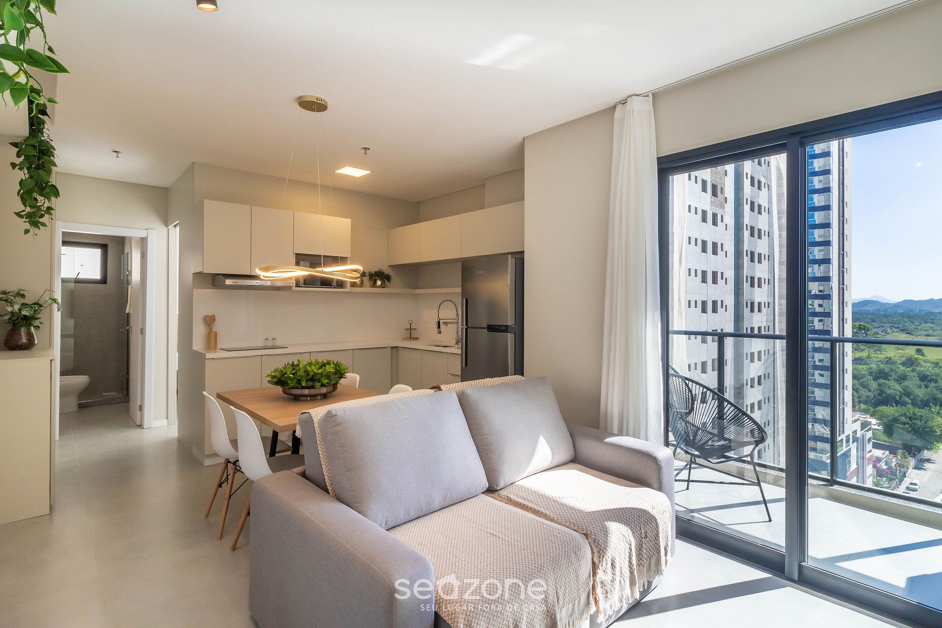Disfrute de una ubicación privilegiada en Meia Praia. Su apartamento, a solo 220 metros de la arena y cerca de restaurantes, ofrece el equilibrio perfecto entre emoción y tranquilidad. En su interior, encontrará un dormitorio, una sala de estar con Smart TV, wifi, una cocina y aire acondicionado. El condominio mejora la experiencia con una piscina y jacuzzi en la azotea, y un gimnasio.