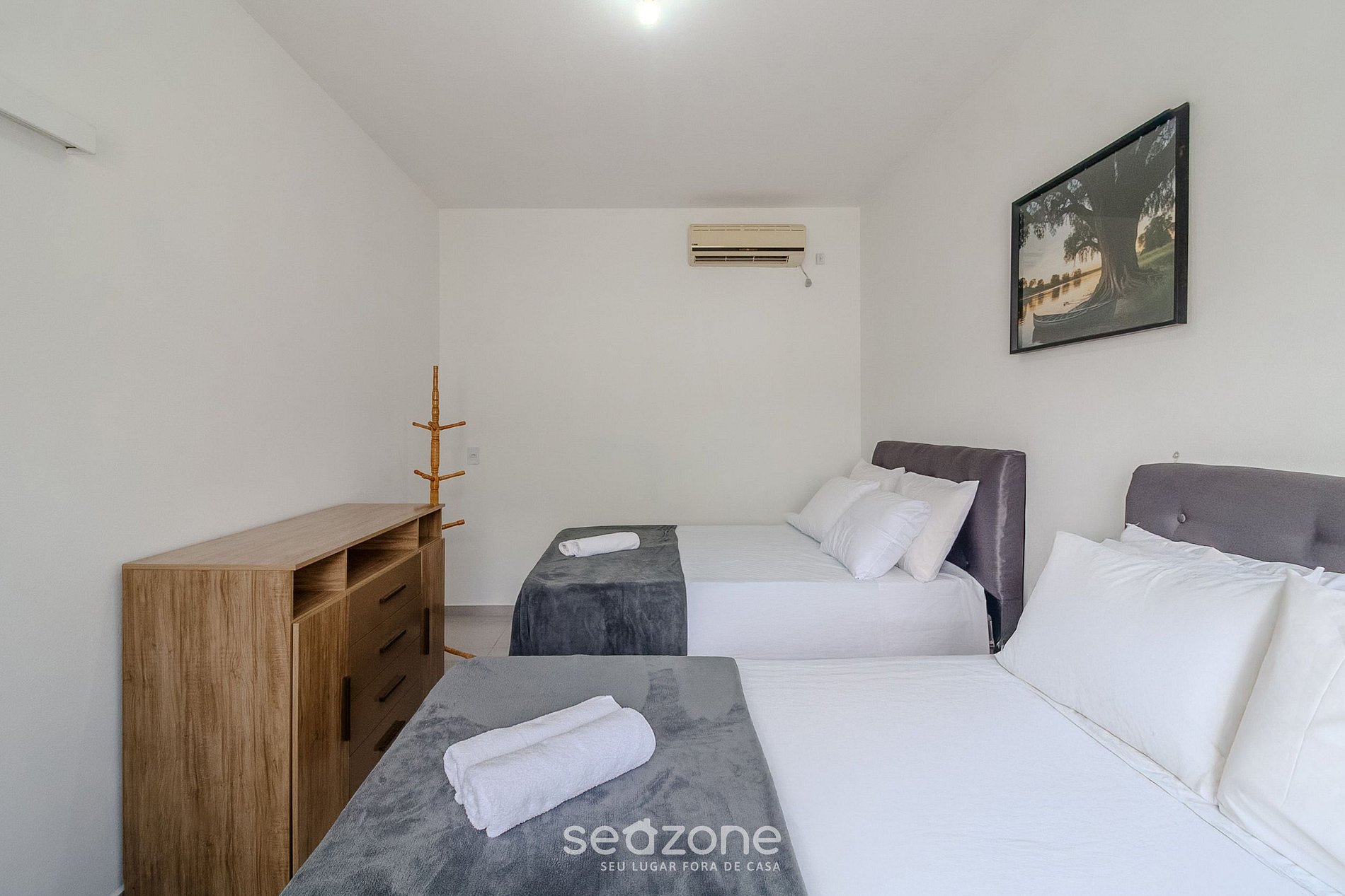 - 1 habitación con 2 camas dobles, arara para ropa, cómoda y aire acondicionado;