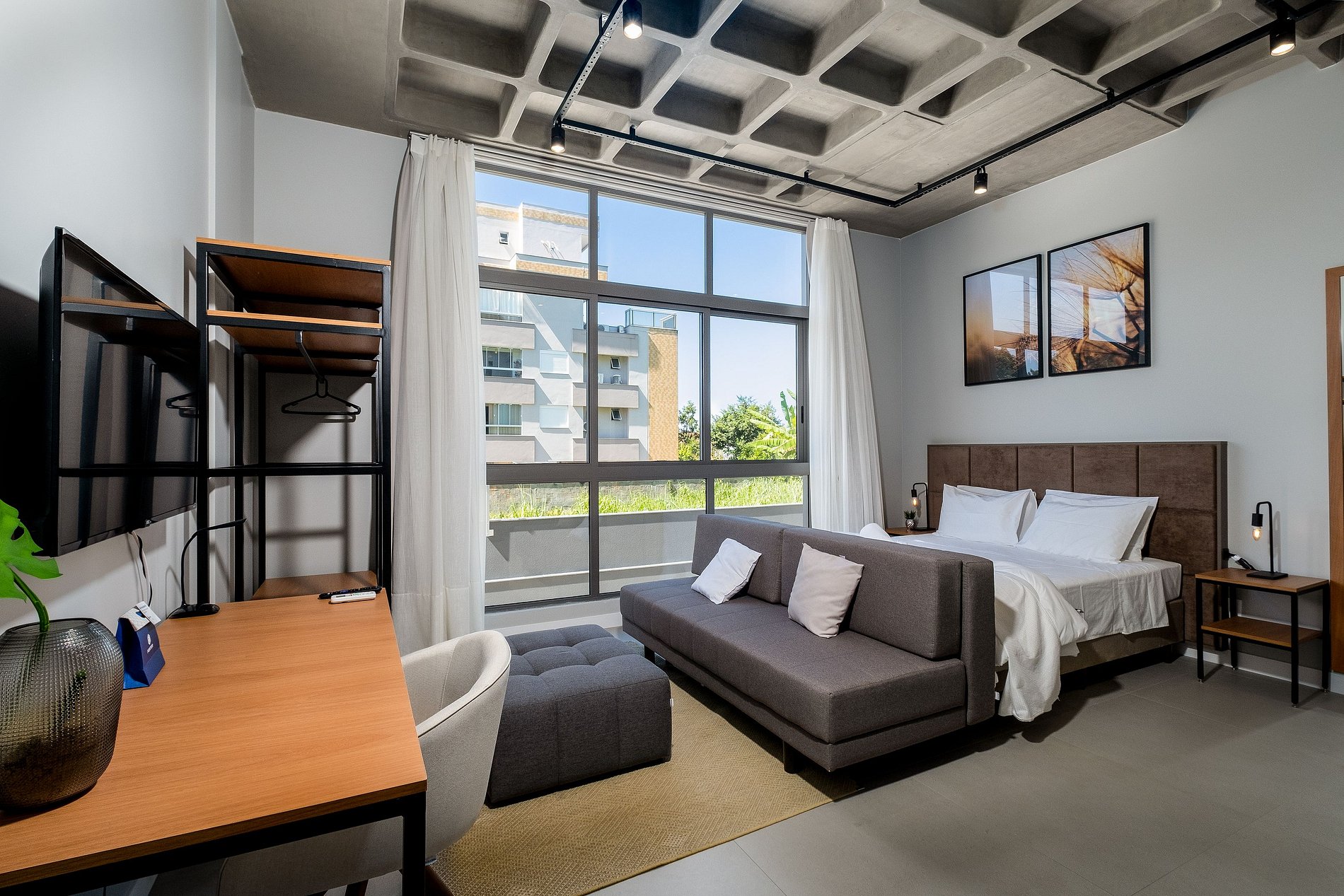 El espacio es nuevo y fue diseñado con un estilo moderno y funcional que busca ofrecer una experiencia completa durante tu estadía en Florianópolis, ya sea por ocio o por trabajo.