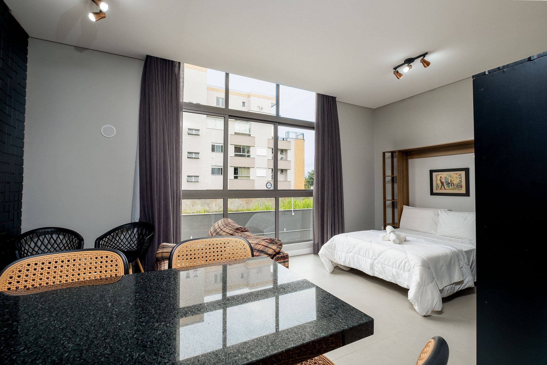 El espacio es nuevo y fue diseñado con un estilo moderno y funcional que busca ofrecer una experiencia completa durante tu estadía en Florianópolis, ya sea por ocio o por trabajo.