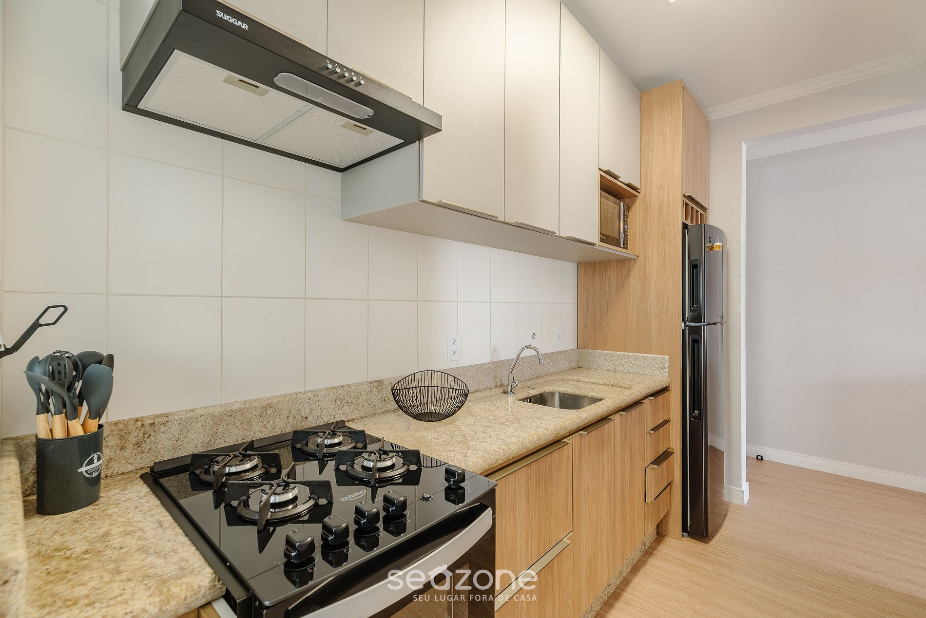- Cocina totalmente equipada con refrigerador, cocina a gas, horno empotrado, airfryer, microondas, sandwichera, cafetera eléctrica, tetera eléctrica, licuadora, copas de vino, sartenes, vajilla y utensilios;