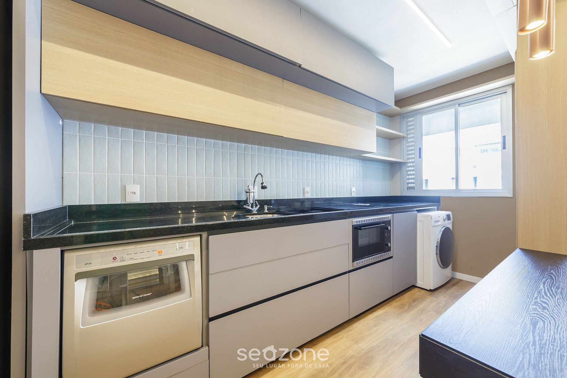 - Cocina completa con nevera, cocina, horno eléctrico, microondas, lavavajillas, sándwich, licuadora, ollas, vajilla y utensilios;