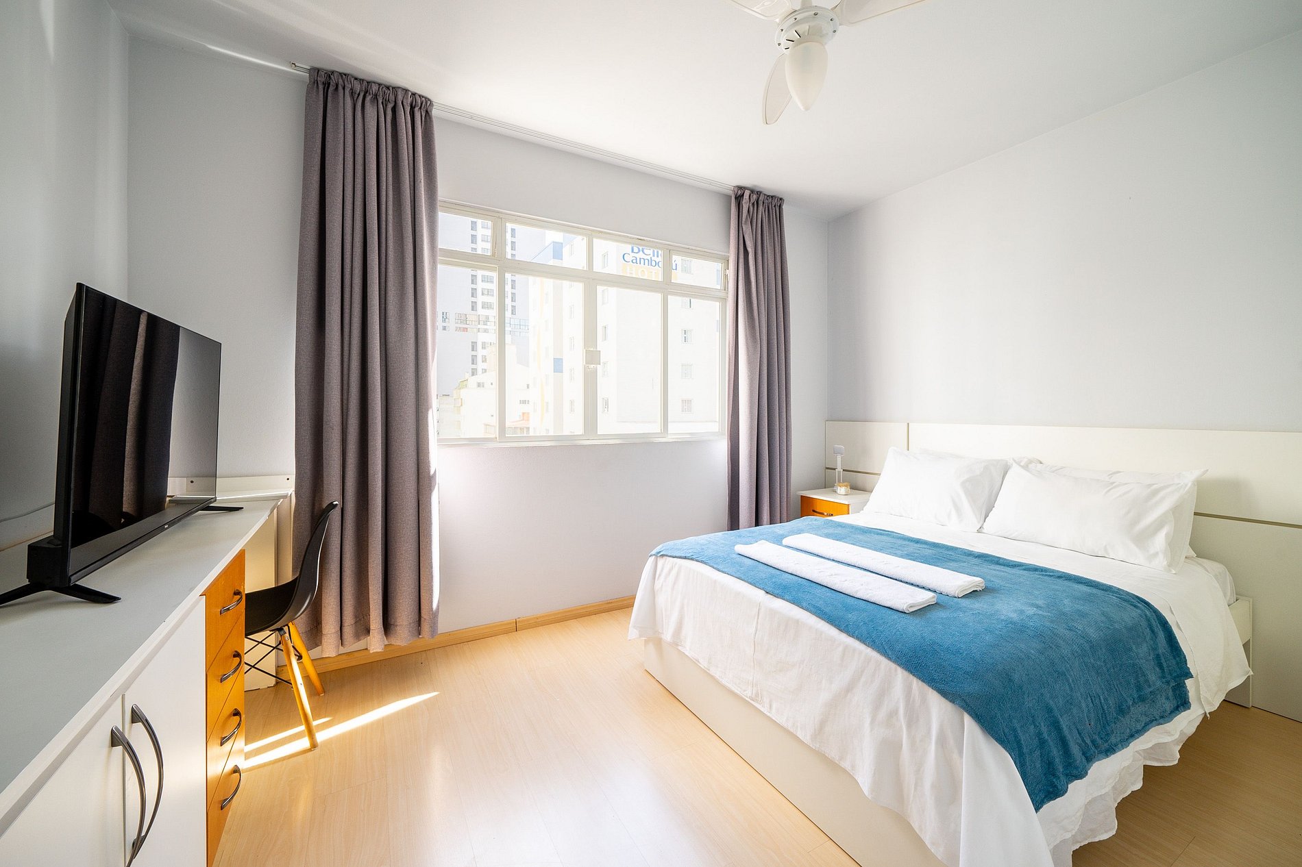 Ven y hospédate en la mejor zona de Balneário Camboriú: frente al centro comercial Atlântico, a una cuadra de av. Alvin Bauer.