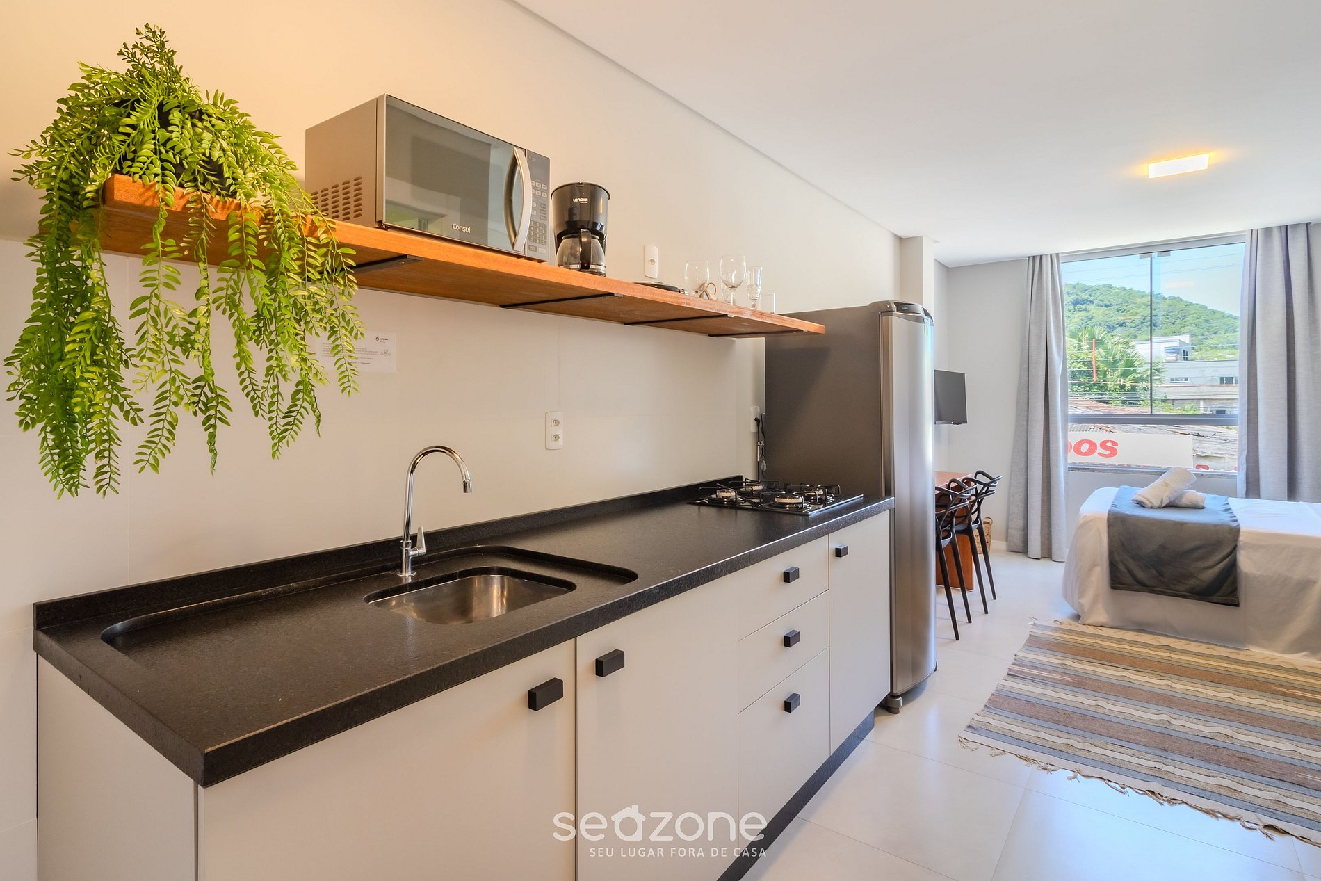 - Ropa de cama y baño de calidad hotelera (ropa de cama y toallas extra tienen un costo adicional según Seazone);