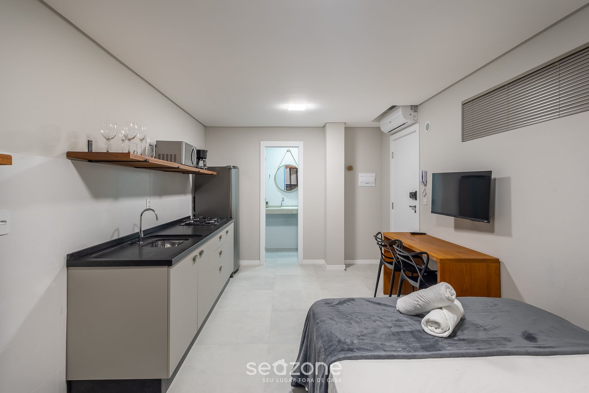 - Estudio con cama doble, Smart TV y aire acondicionado.