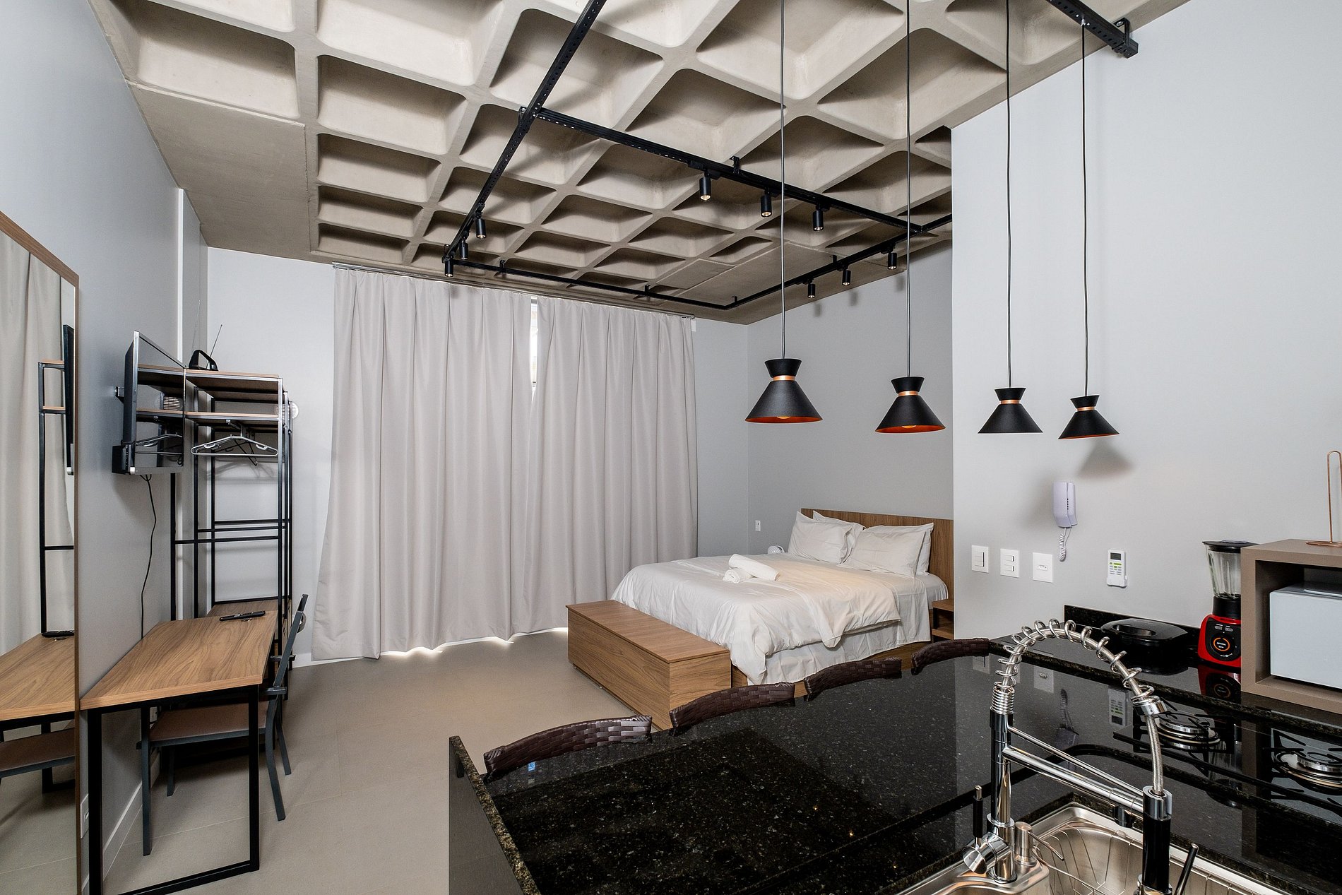 Con una decoración moderna y limpia, el estudio es bastante funcional y bien dividido, proporcionando privacidad y comodidad a los huéspedes. La ubicación es excelente, cerca de varios bares, restaurantes, tiendas y mercados.