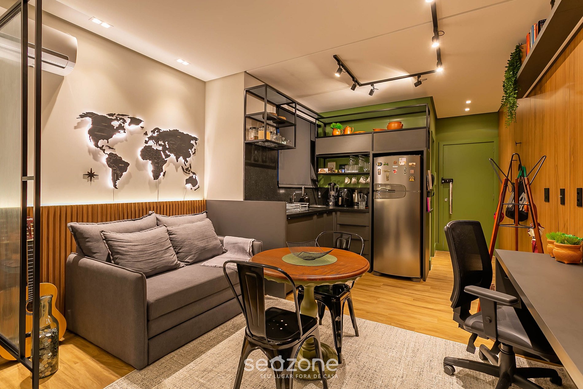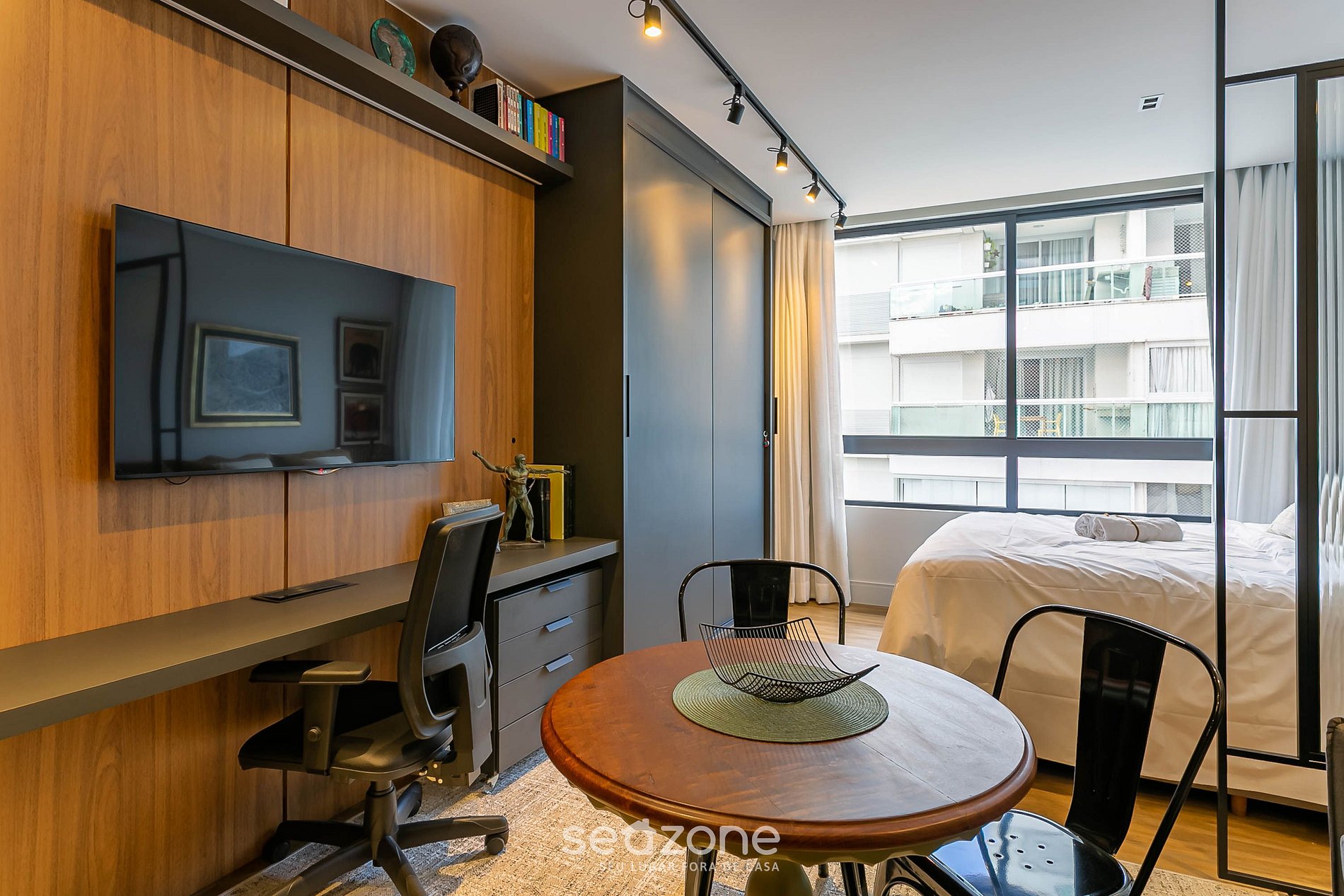 - Estudio con decoración nueva y moderna con muebles a medida y ambientes integrados;