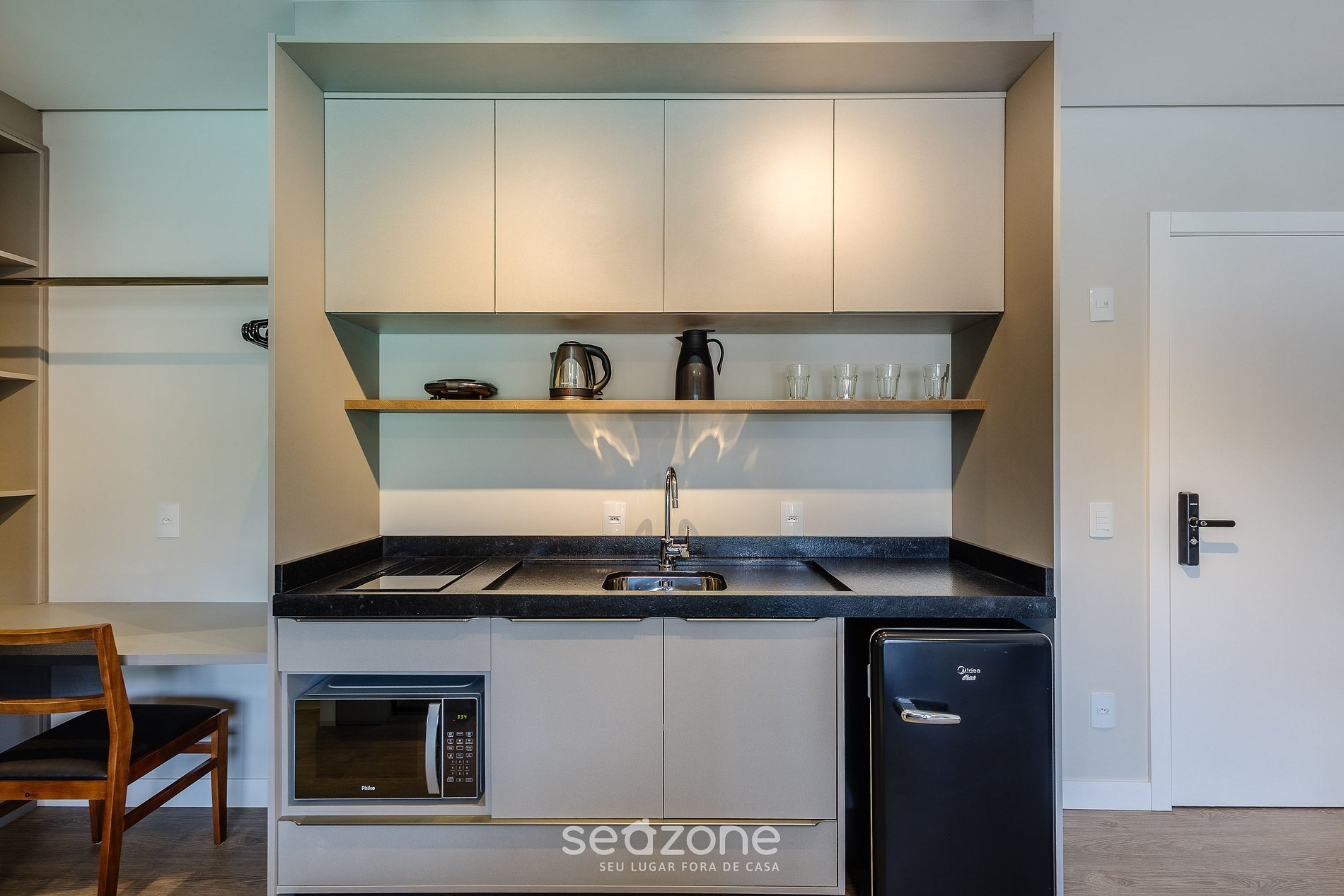 - Cocina completa con minibar, anafe, microondas, sandwichera, kit de café (portafiltro, termo), hervidor eléctrico, licuadora, copas de vino, sartenes, vajilla y utensilios;