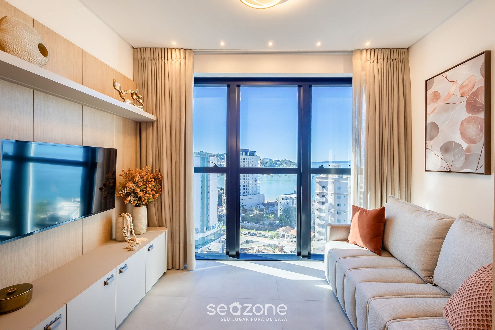 Con vista panorámica al mar y a la ciudad, este apartamento ofrece todo el confort que usted necesita. Habitación con cama queen, Smart TV y aire acondicionado, además de una sala acogedora con sofá-cama individual y TV. La cocina completa garantiza practicidad. Disfrute de las comodidades del edificio, como piscina, boliche, sauna, gimnasio y parrilla.