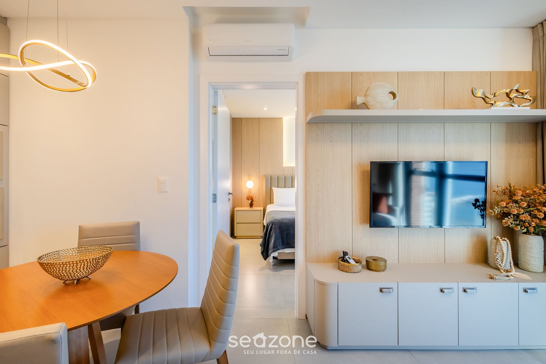 - Sala de estar con sofá cama individual, smart TV y aire acondicionado;