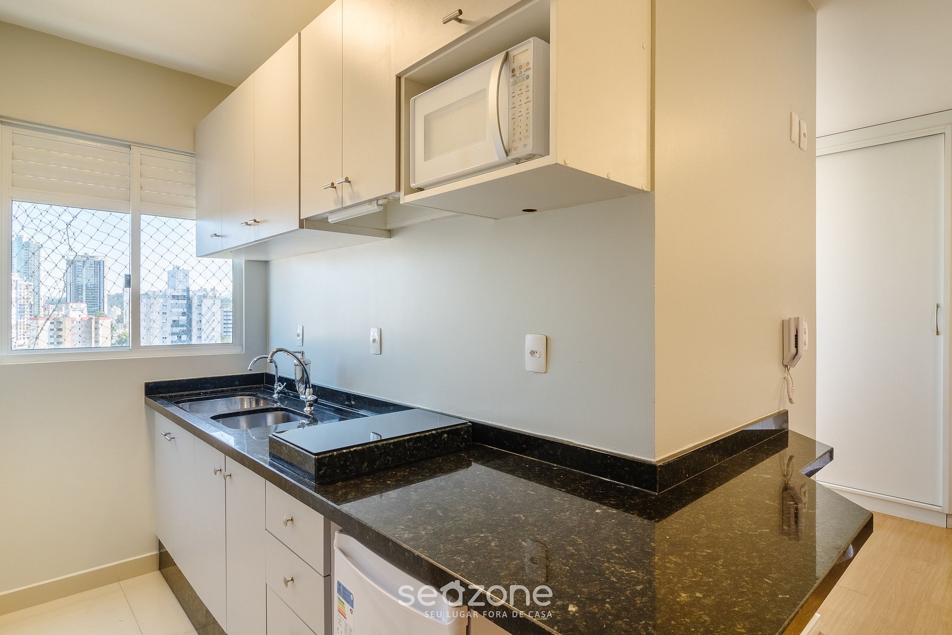 - Cocina completa con minibar, estufa de vitrocerámica, microondas, sandwichera, cafetera eléctrica, licuadora, copas de vino, sartenes, vajilla y utensilios;