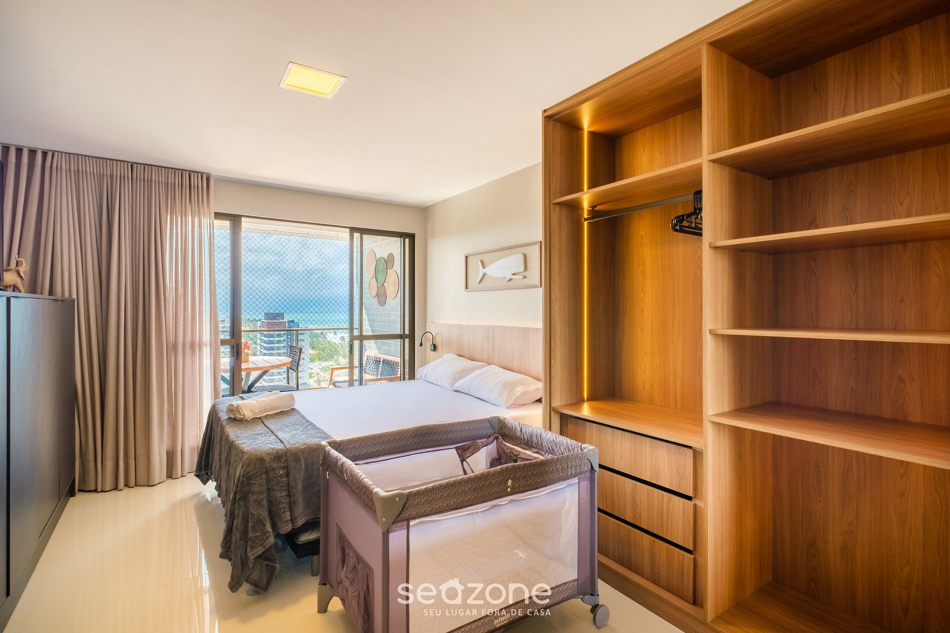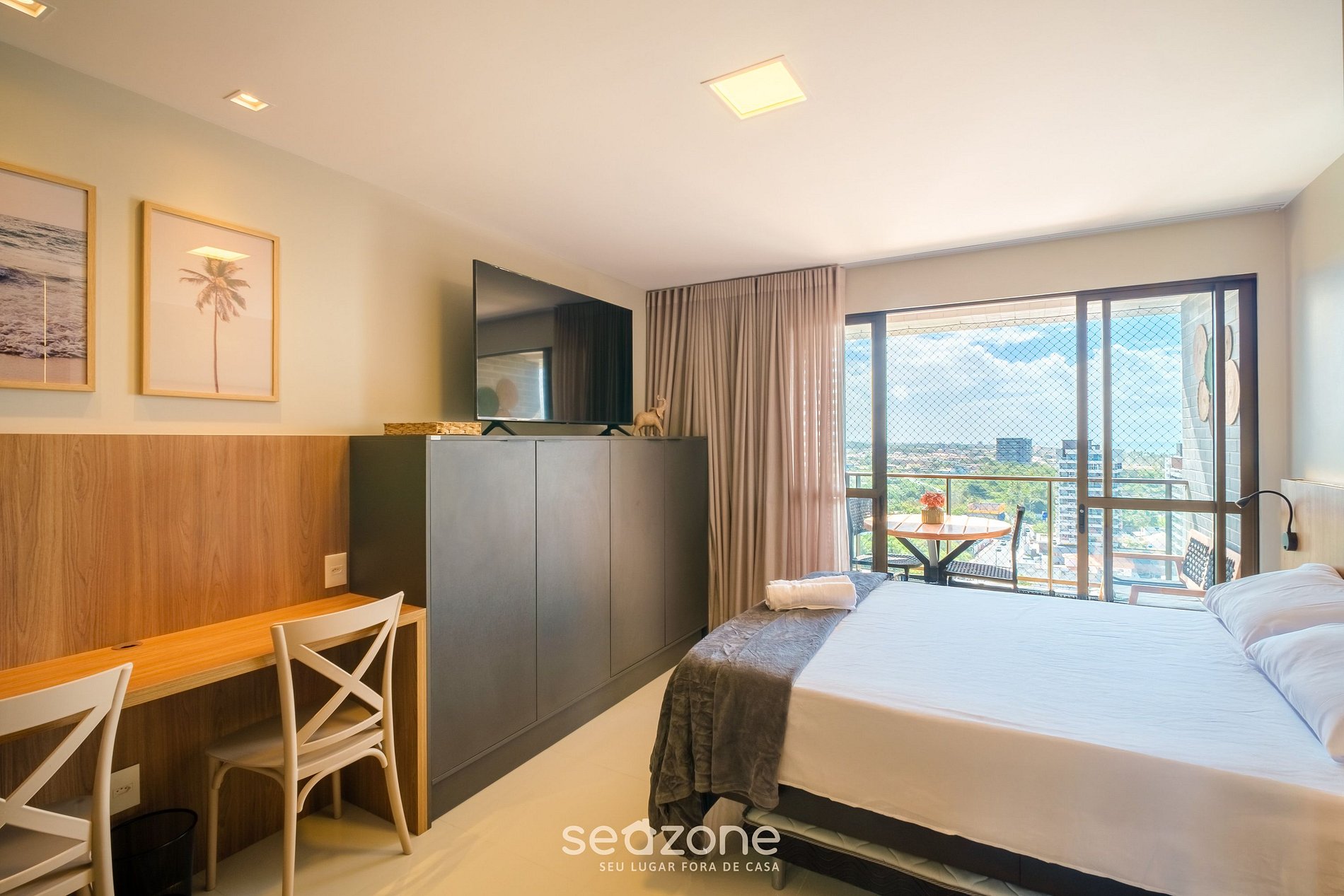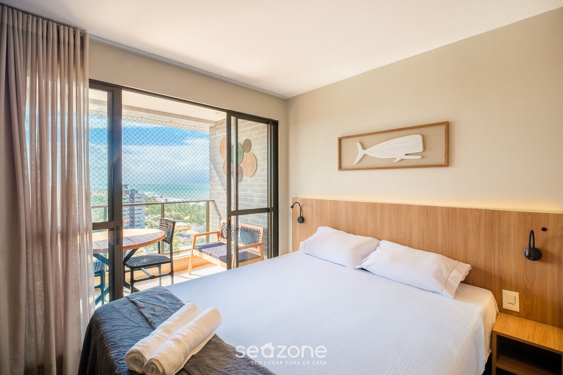 A 350 m del mar, este espacio combina un balcón con vista panorámica a la ciudad y al océano, cocina completa, cama queen, cama auxiliar, aire acondicionado y Smart TV, el ambiente ideal para relajarte. Disfruta también de las áreas comunes como una academia bien equipada, piscina y coworking para mantener tu rutina.