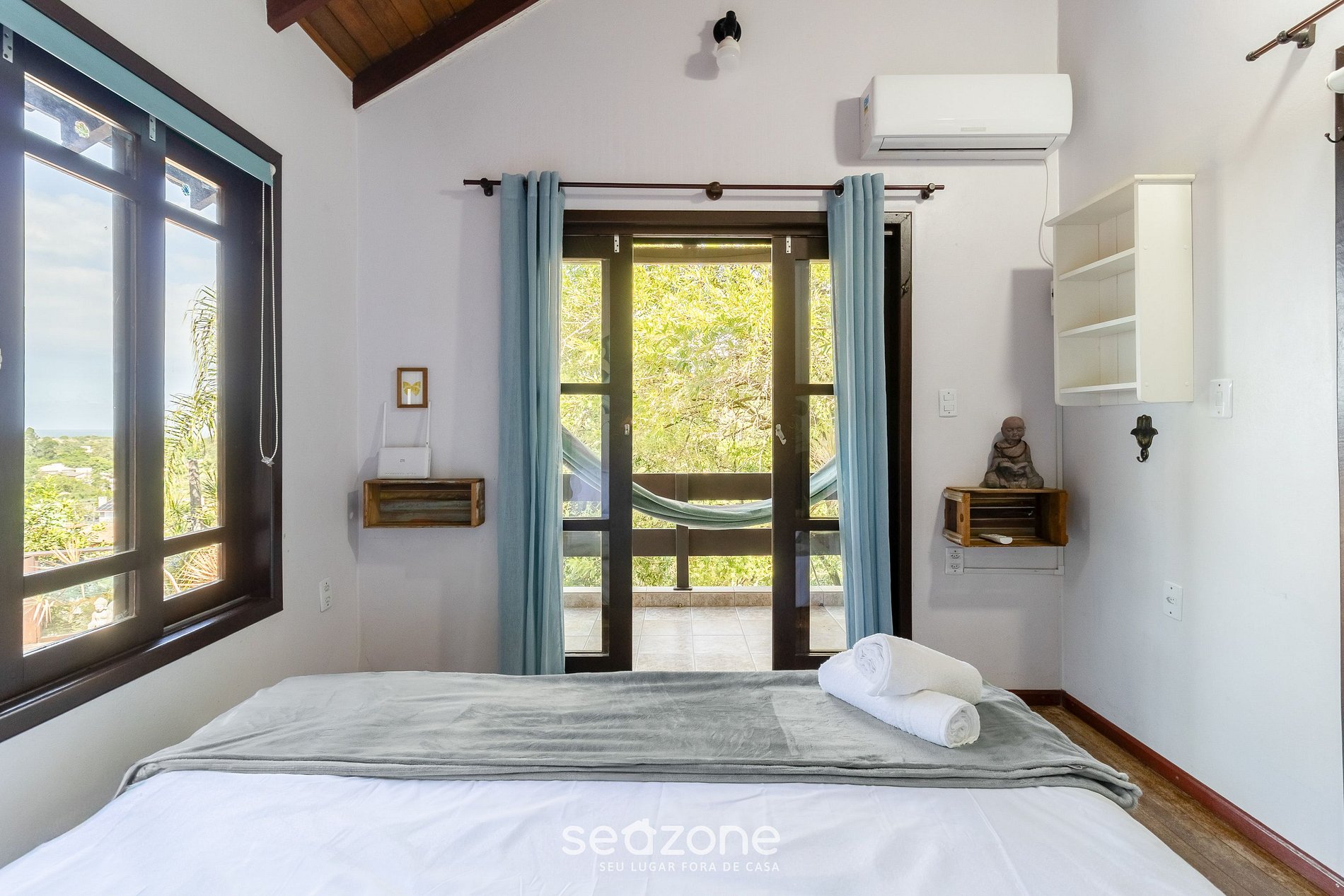 Casa con piscina privada, 3 habitaciones con aire acondicionado, cocina completa y espacio de trabajo, que garantizan comodidad y practicidad. Destaca por su vista a la Isla do Campeche, al mar y a la Playa da Joaquina, en medio de la naturaleza y con total tranquilidad.