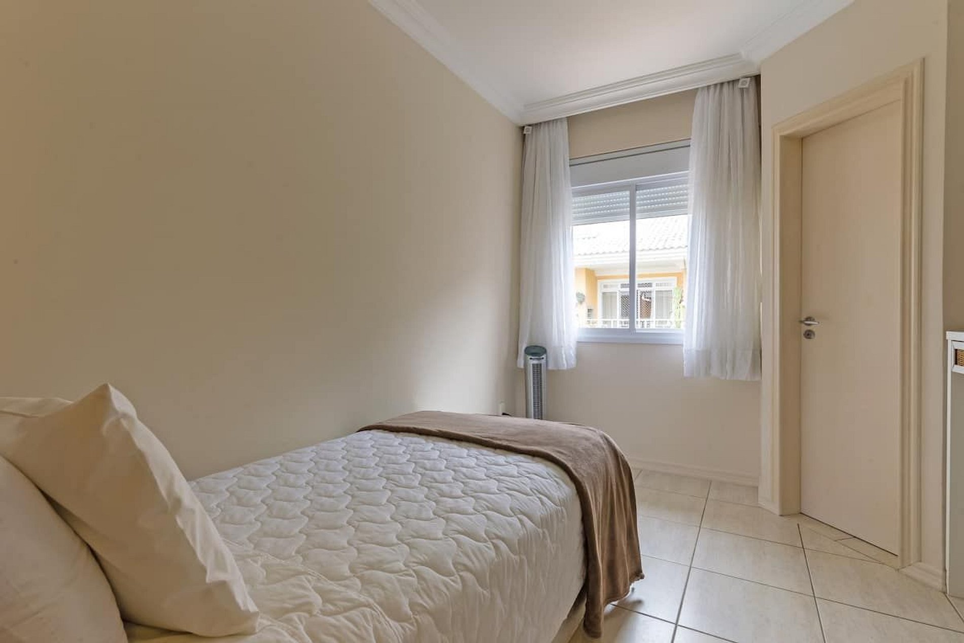 - 1 suite con cama individual, colchón individual, 1 cama auxiliar individual y aire acondicionado portátil;