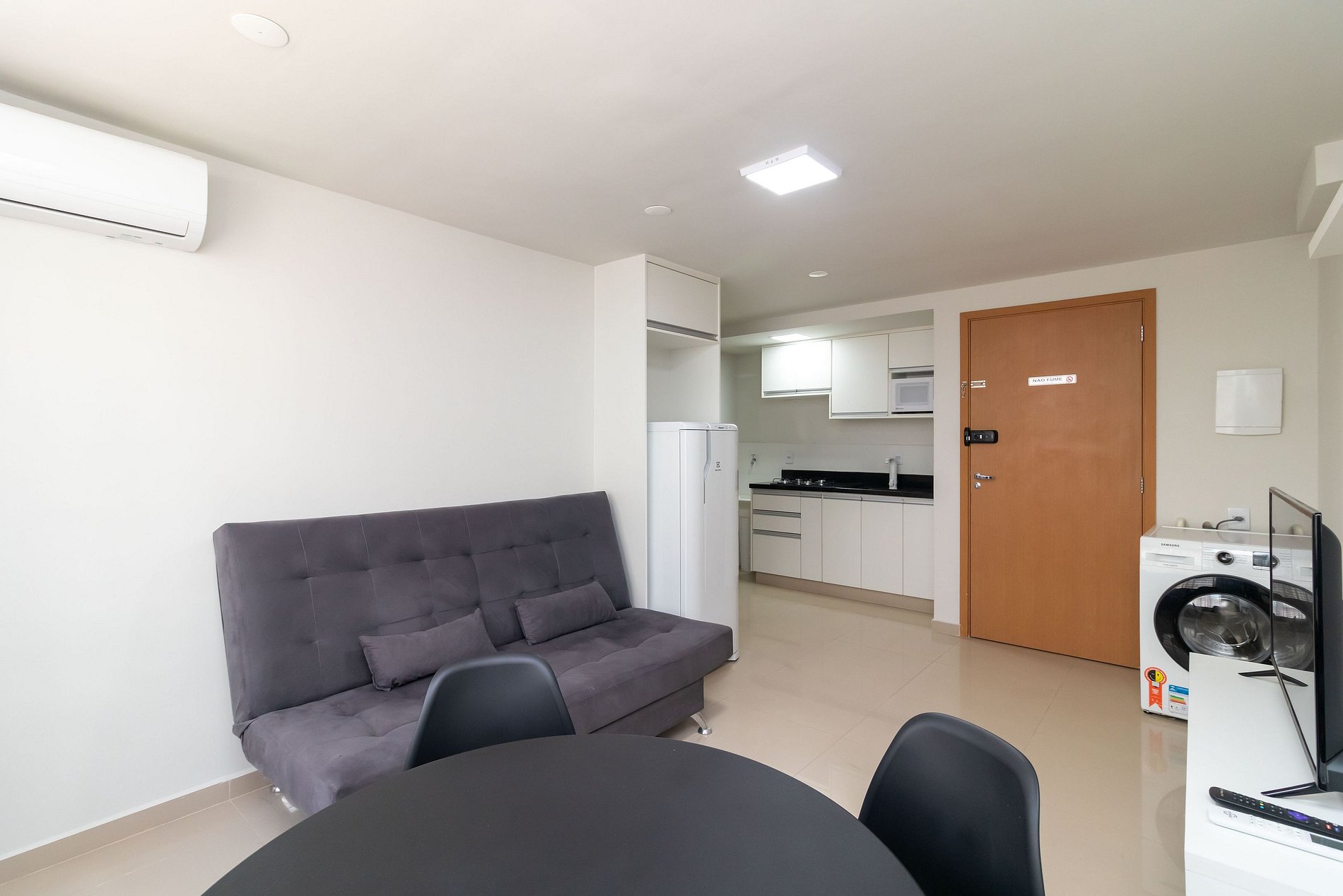 Apartamento nuevo en Asa Norte de Brasília, ubicado cerca de Jaedson Barbearia. Cuenta con 1 dormitorio con cama doble y un sofá cama en la sala. Cocina totalmente equipada. Sala de estar con smart TV y sofá cama. Aire acondicionado en todos los ambientes. Lavadora y secadora, y mesa de comedor. Wi-Fi y todo lo necesario para que su estadía sea placentera.