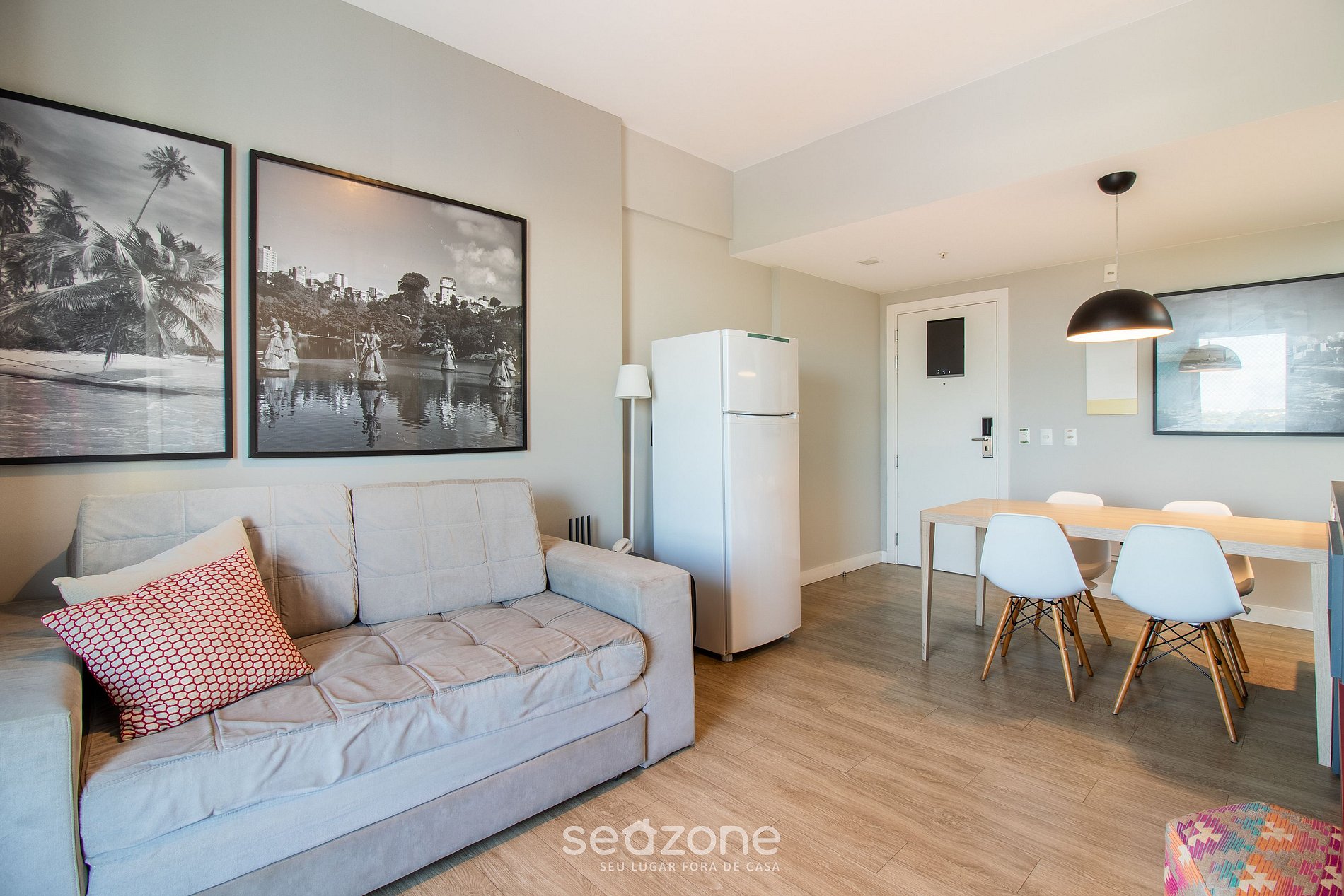 Disfrute de comodidad en este moderno apartamento en Caminho das Árvores. Con 1 dormitorio climatizado, cama queen, cocina completa, sala con sofá cama y 2 smart TVs. Balcón con vista a la ciudad. Cerca del Salvador Shopping, hospitales como São Rafael, además de restaurantes y opciones de ocio. Fácil acceso al transporte público.