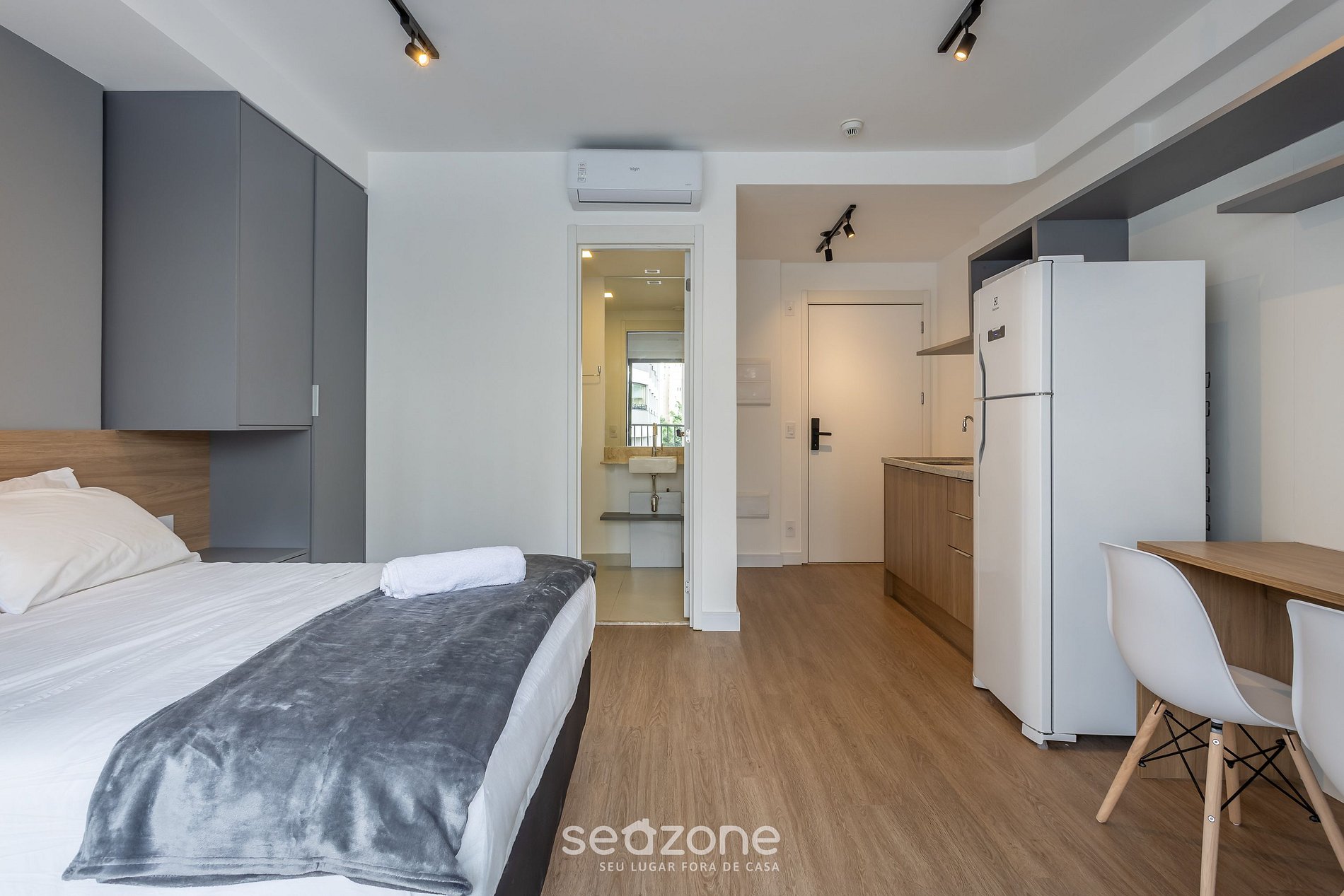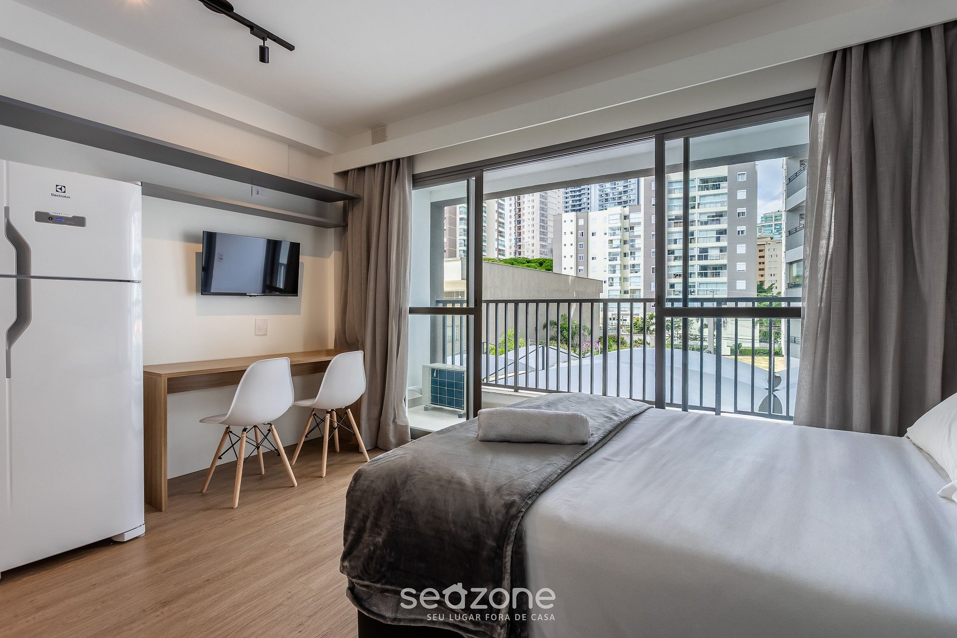 Disfruta de un ambiente cómodo y práctico en este encantador estudio. Con cama doble, smart TV y un balcón con vista panorámica, te sentirás como en casa. La ubicación en Jardim das Acácias te deja a pocos pasos del metro y de una gran variedad de opciones de ocio y gastronomía. Además, aprovecha la barbacoa del edificio.