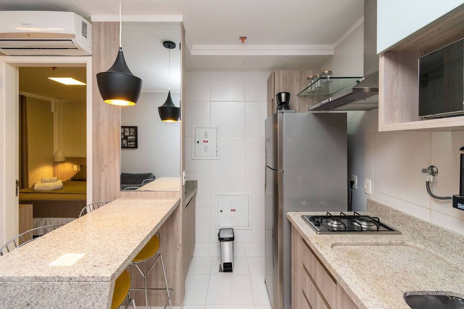 Disfrute de una estancia completa en este apartamento de 1 dormitorio en Jardim Goiás, cerca del Parque Flamboyant y del Shopping Flamboyant.