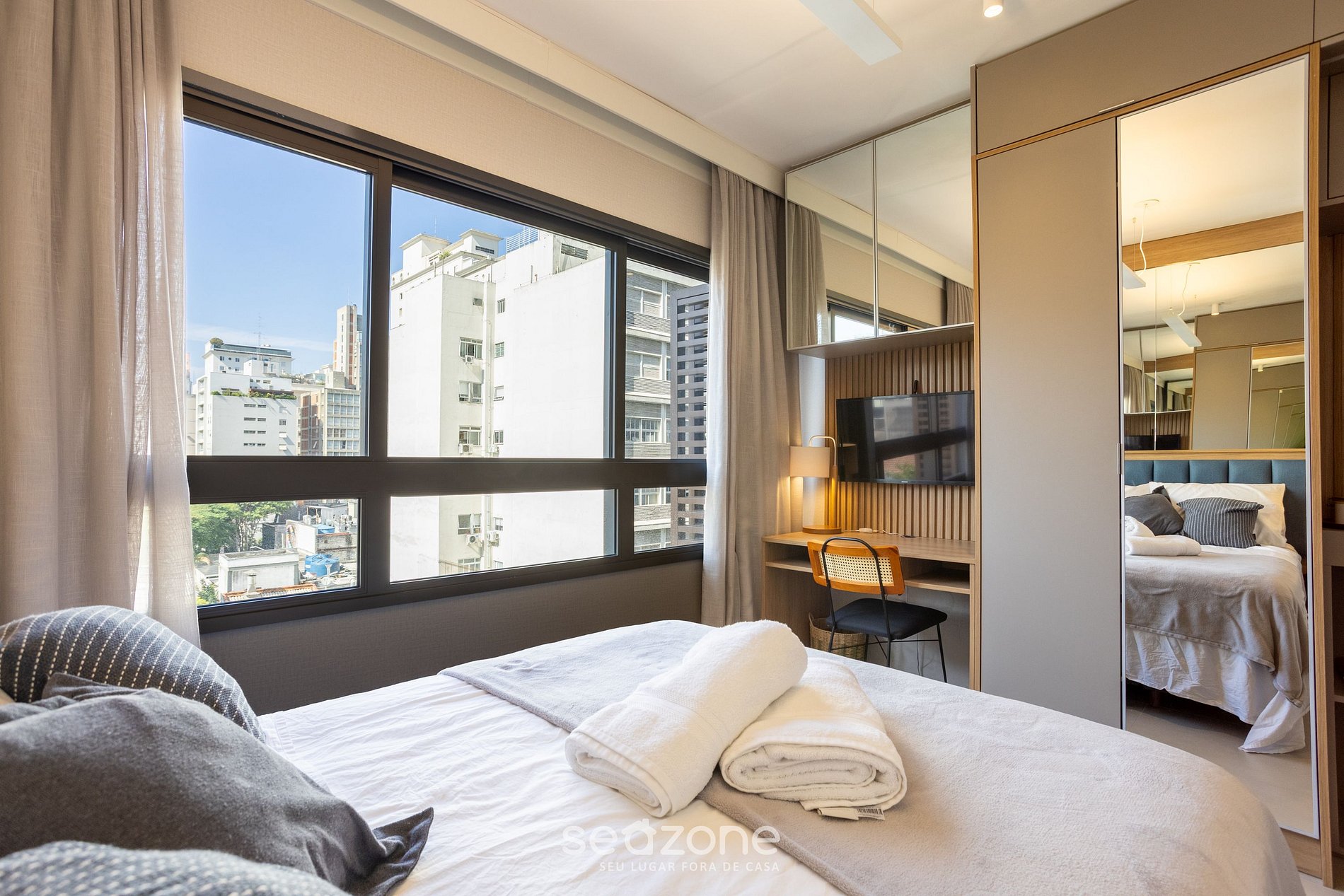 Descubra la vibrante energía de São Paulo alojándose en el corazón de todo: ¡la icónica Rua Augusta! Imagina despertar en un estudio moderno, súper cómodo y diseñado para la máxima practicidad, listo para explorar la metrópolis.
