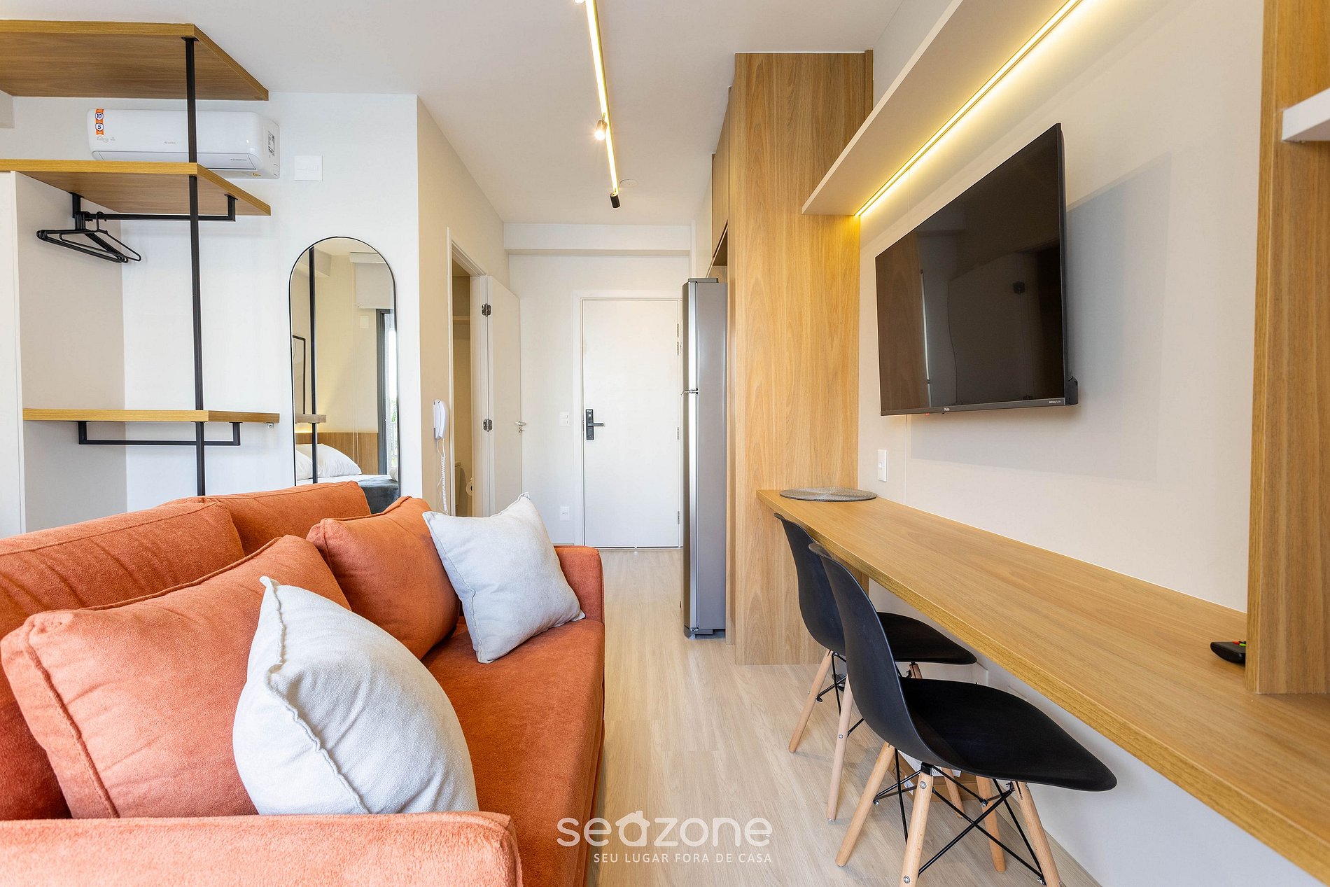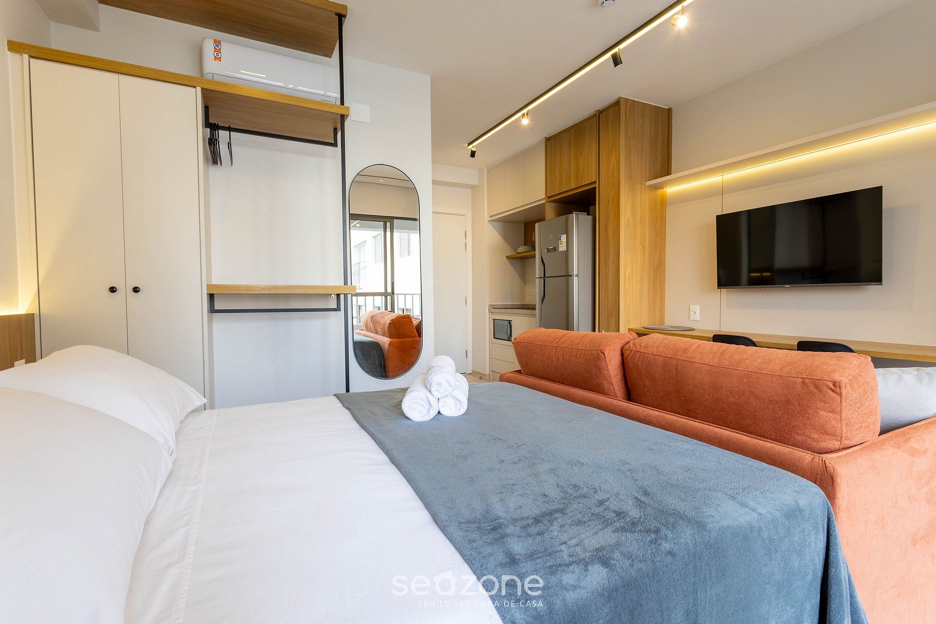 ¡Su base moderna y práctica en São Paulo! Este estudio es ideal para quienes buscan eficiencia sin renunciar al confort. Disfrute del descanso perfecto en la cama de matrimonio en un ambiente totalmente climatizado. El inmueble cuenta con Smart TV y cocina completa. Para su rutina, el condominio ofrece gimnasio, área gourmet con parrilla y lavandería. ¡Todo lo que necesita para una buena estancia en SP! Reserve la practicidad de un estudio con ocio y confort.