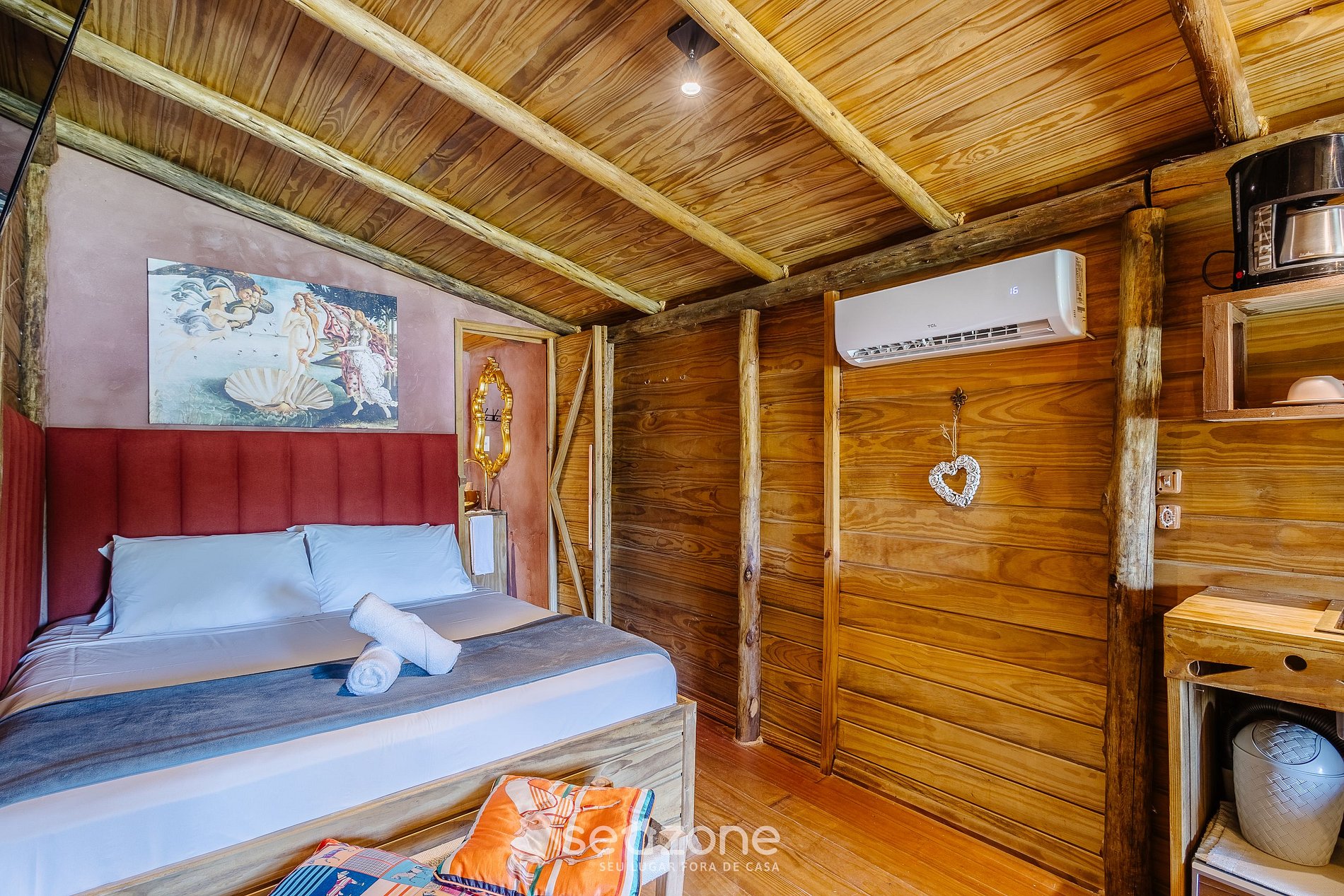 - Entrepiso con 1 cama queen, Smart TV, perchero para ropa y aire acondicionado;