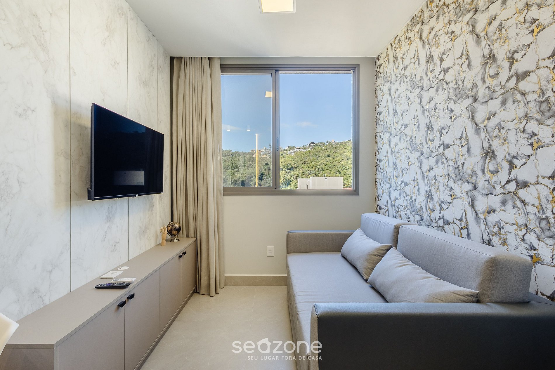 - Sala de estar con sofá cama doble, Smart TV y aire acondicionado;