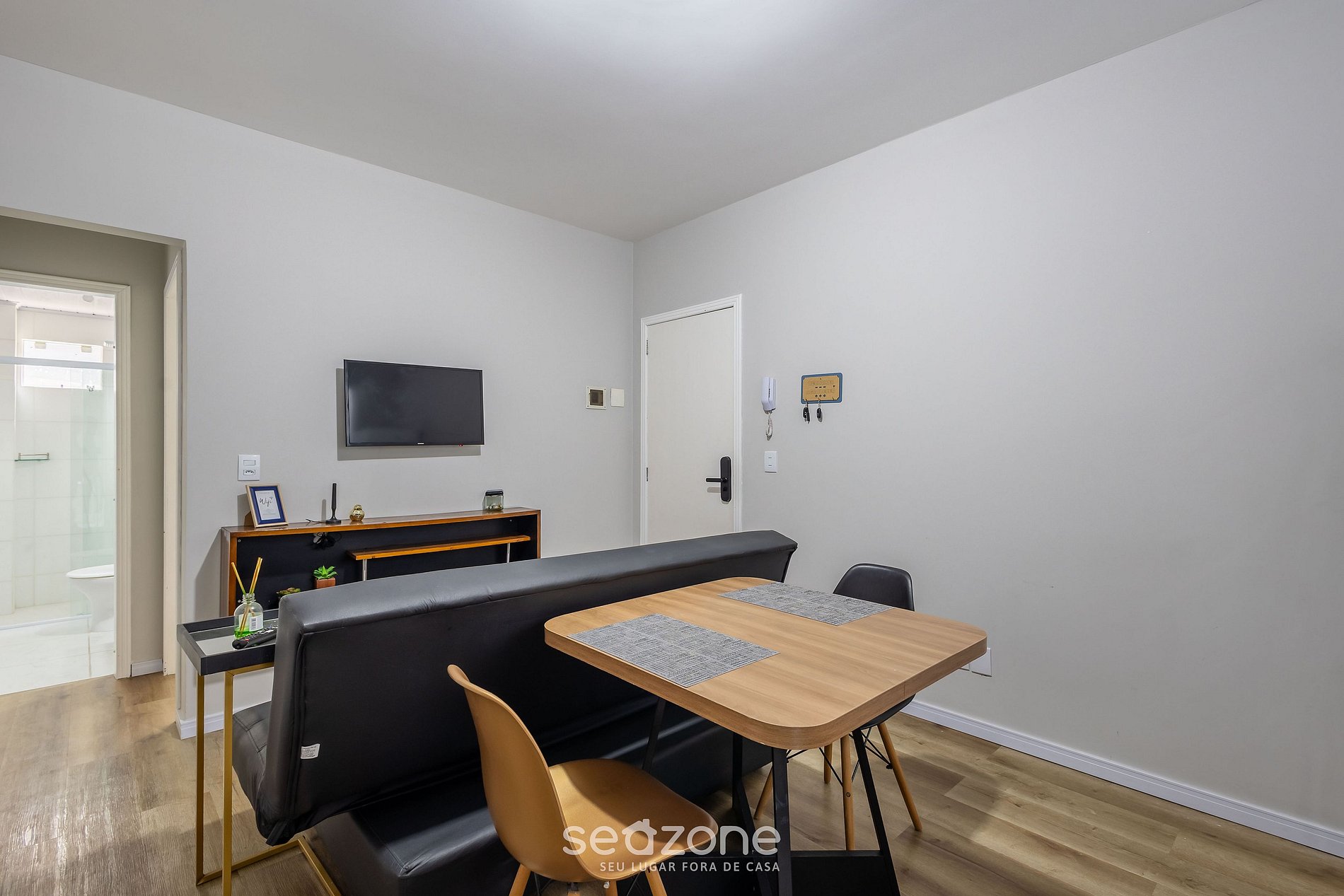 Sala de estar con sofá cama y Smart TV;