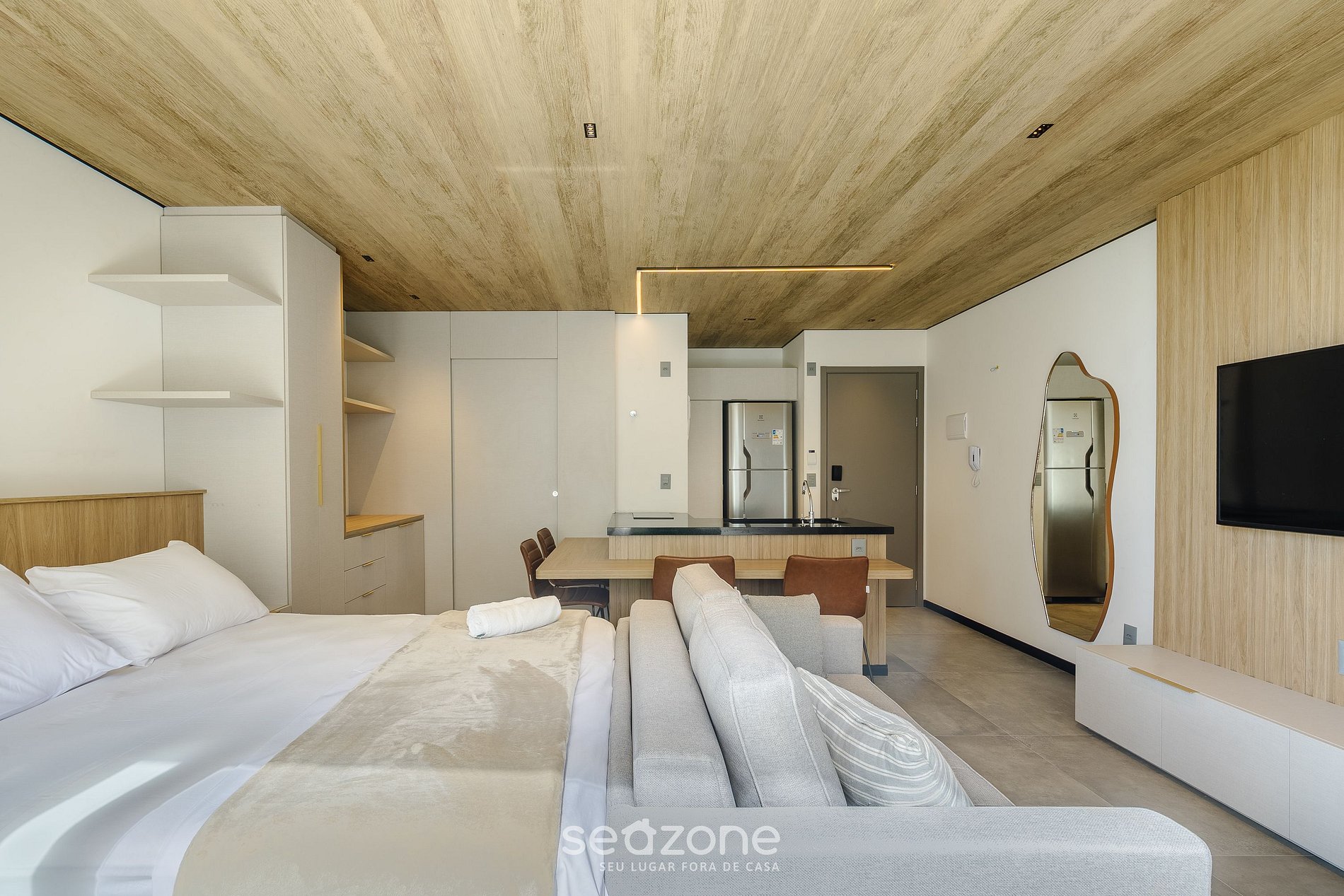 - Cama queen size, sofá cama doble, cortinas blackout, closet, smart TV y aire acondicionado;