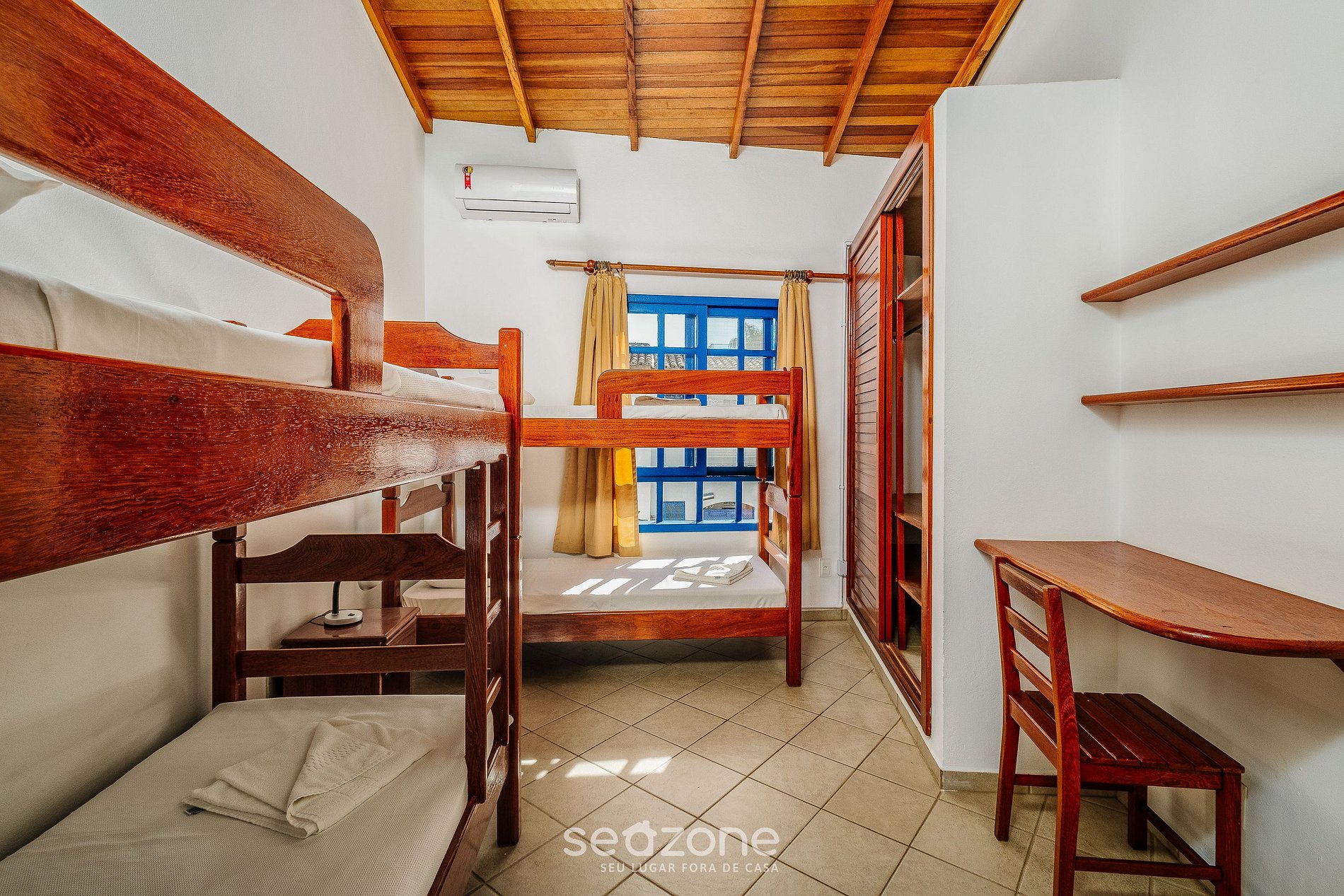 - 1 dormitorio con 2 literas individuales, armario y aire acondicionado;