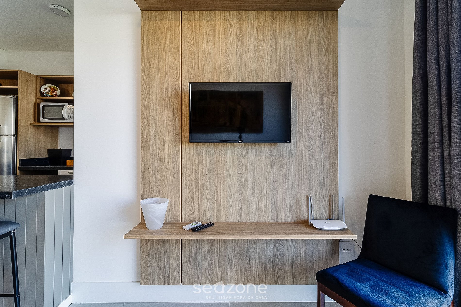 - Sala de estar con sofá y Smart TV;